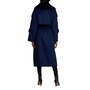 • Long sleeves, button closure, pockets, lined, relaxed fit, self belt