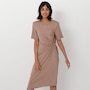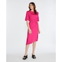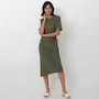Reinvent your look to something fun and flirty wearing this shoulder pad t-shirt dress designed by Badgley Mischka.