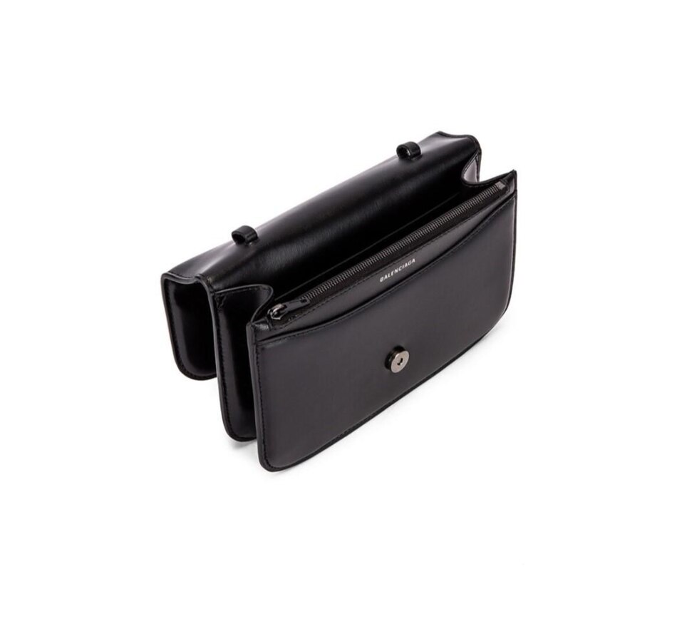 This wallet on chain is crafted with a shiny and smooth black calfskin leather. The fold-over flap top magnetic snap closure opens to a black leather lined interior with a bill slot, credit card slots, and a zipper pocket. The detachable black-tone chain allows for this piece to be carried on the shoulder or as a clutch. This chic wallet on chain is perfect for day or a night out, with the distinctive style and quality of Balenciaga!