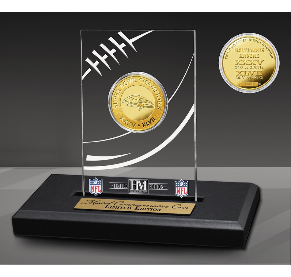 • Baltimore Ravens 2x Super Bowl Champions Gold Coin with Acrylic Display