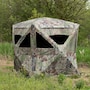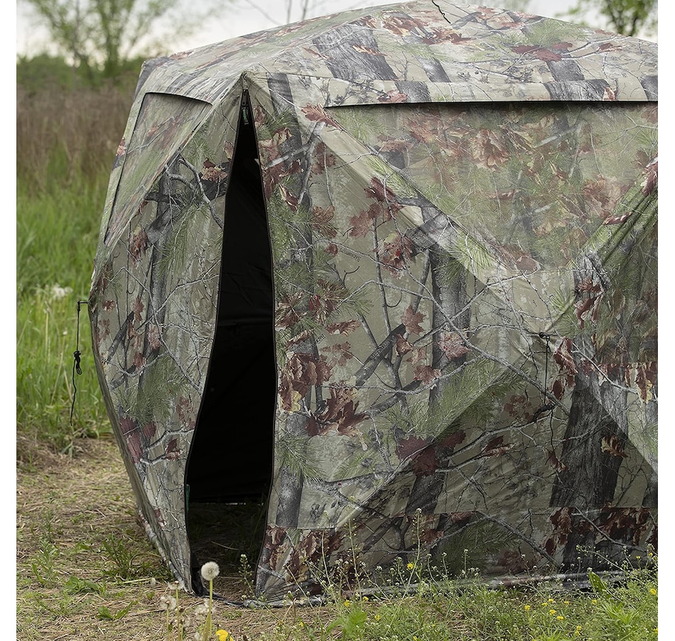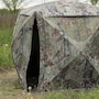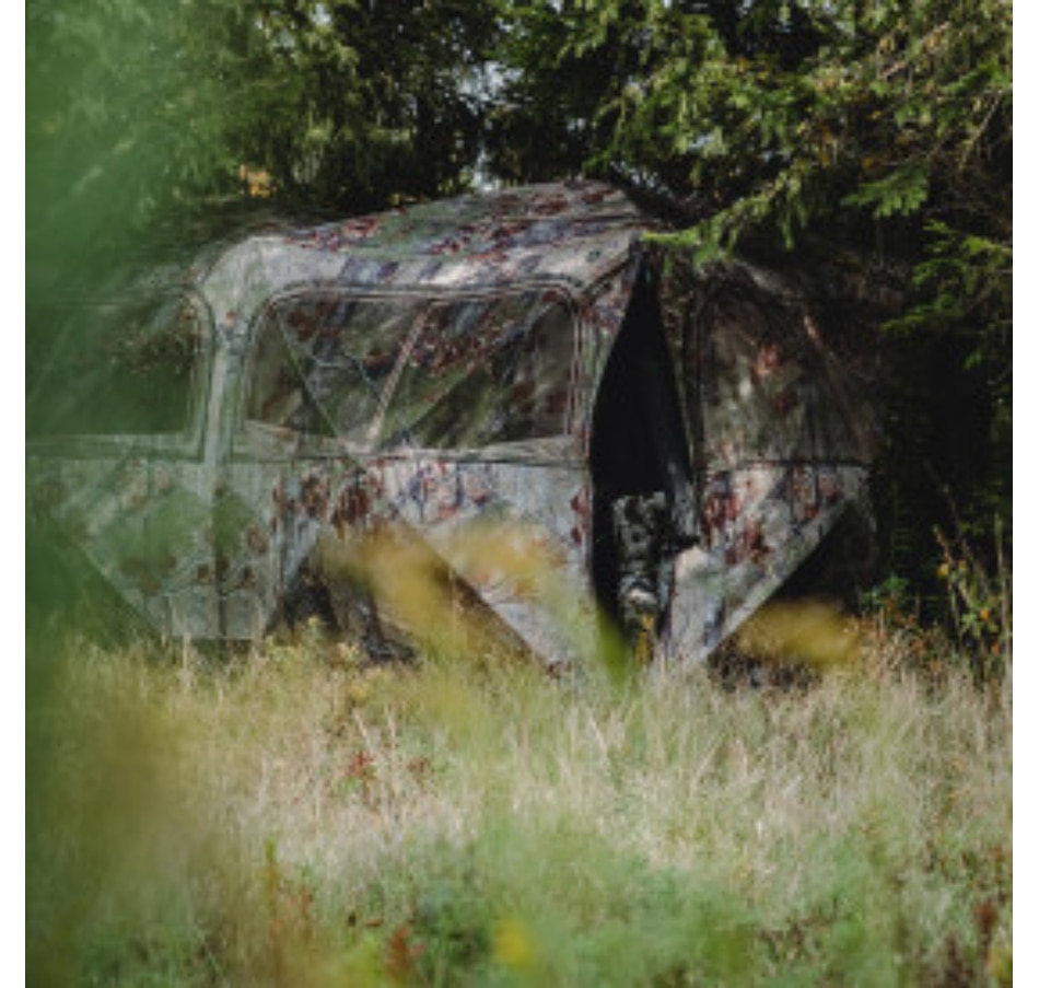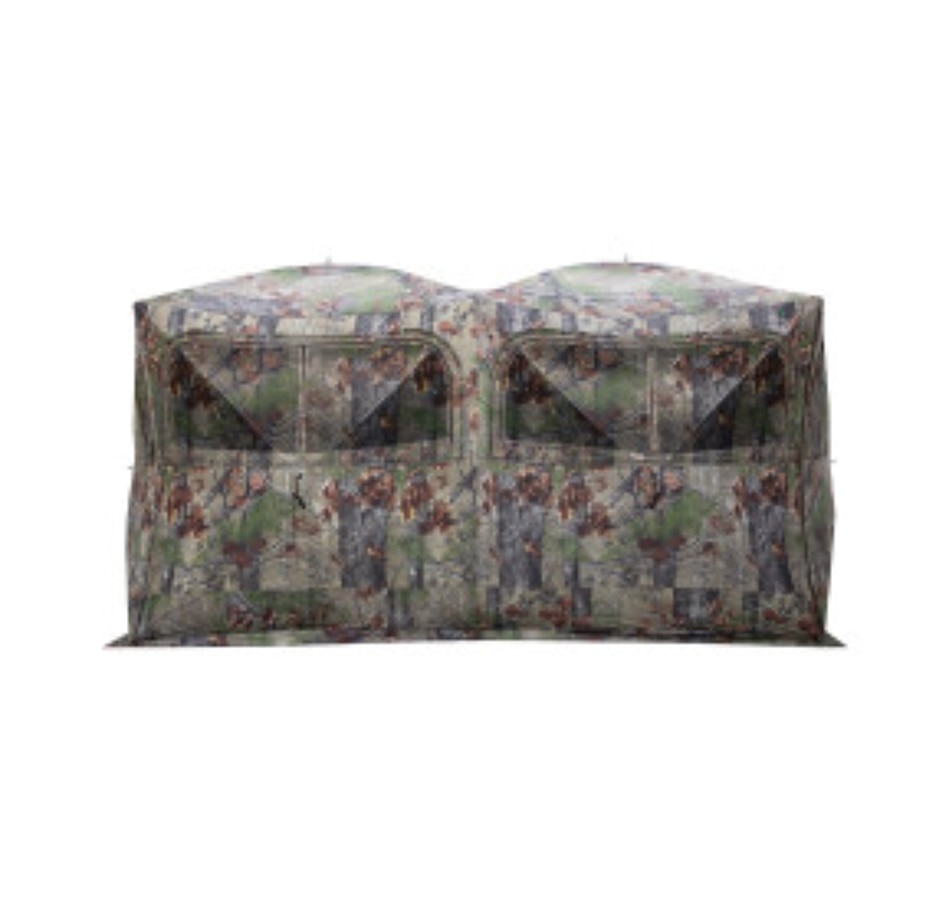 The Beast Hub is the largest side-by-side hub blind on the market, offering incredible space for large group hunts, tons of gear or even concealment for an ATV. The six large, zippered windows can be opened or closed in multiple arrangements to suit any hunter’s needs. The window mesh is shoot-through and can easily be replaced when needed. Two full-length, zippered doors in opposite corners allow easy entry and exit. Even with its large size, the Beast is still just as simple to set up as other Barronett Blinds.