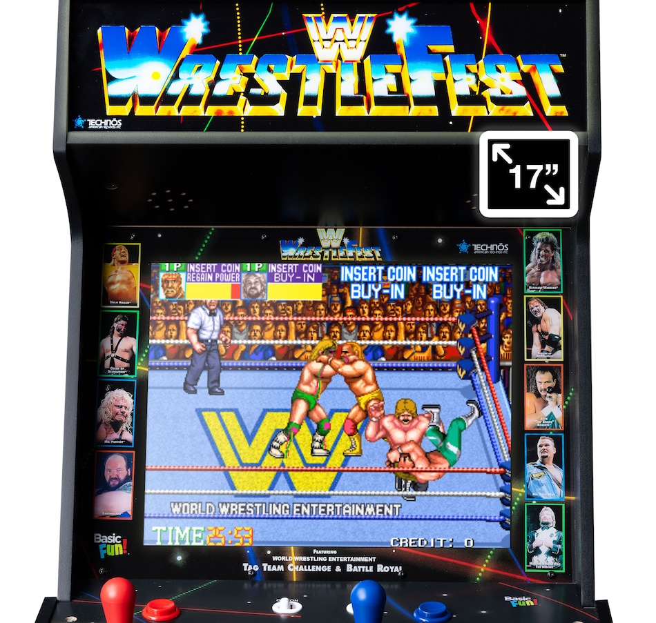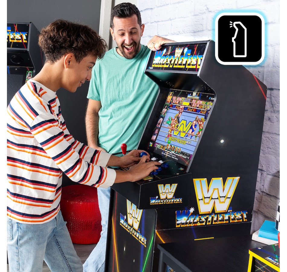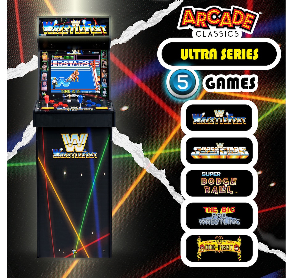 • Arcade Classics WWE Ultra Series arcade game: battle it out in five arcade-style favourites—WrestleFest, SuperStars, The Big Pro Wrestling!, Super Dodgeball, and Acrobatic Dog-Fight—all in one powerhouse cabinet