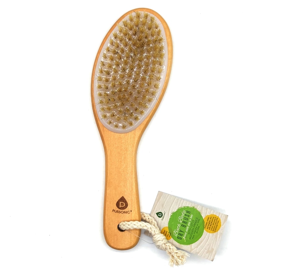 In the shower or bath, your back could use a little love too. Cleanse and scrub all the hard-to-reach places with this Bamboo Bristle Bath Brush from Pursonic. A long hand-crafted handle made from bamboo makes it easy to reach the middle of your back for a deep clean all over. The cruelty-free bristles gently exfoliate skin for a smooth, radiant appearance. Do not use on irritated, damaged or broken skin. If irritation develops, discontinue use immediately.Features:100% Natural WoodExfoliate, Soften, and Brighten Skin with dry brushing !Removes dirt, Toxins & dead skin cellsNylon Bristle Made from recycled & sustainable materials Soft, synthetic bristles gently scrub skin cleanDry Skin brushing & Exfoliating with 100% natural boar bristles 100% Recycled PackagingModel Number: DB300