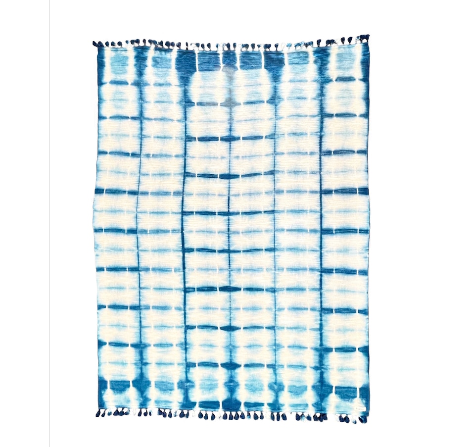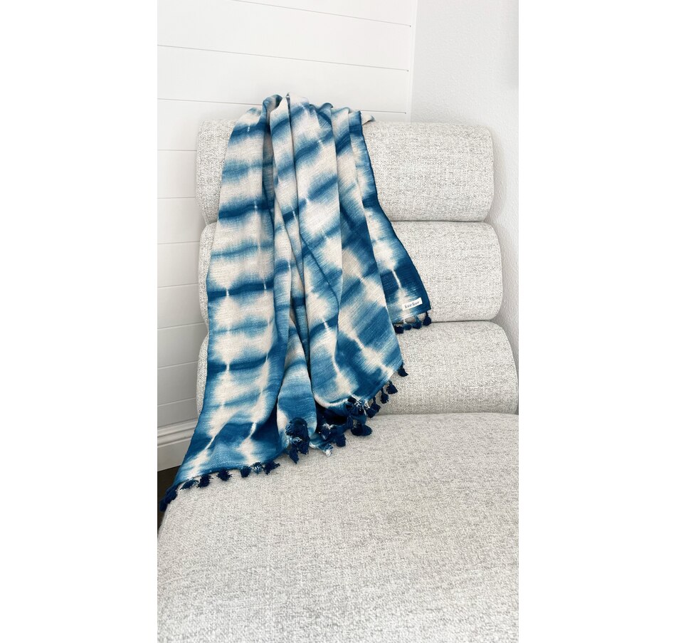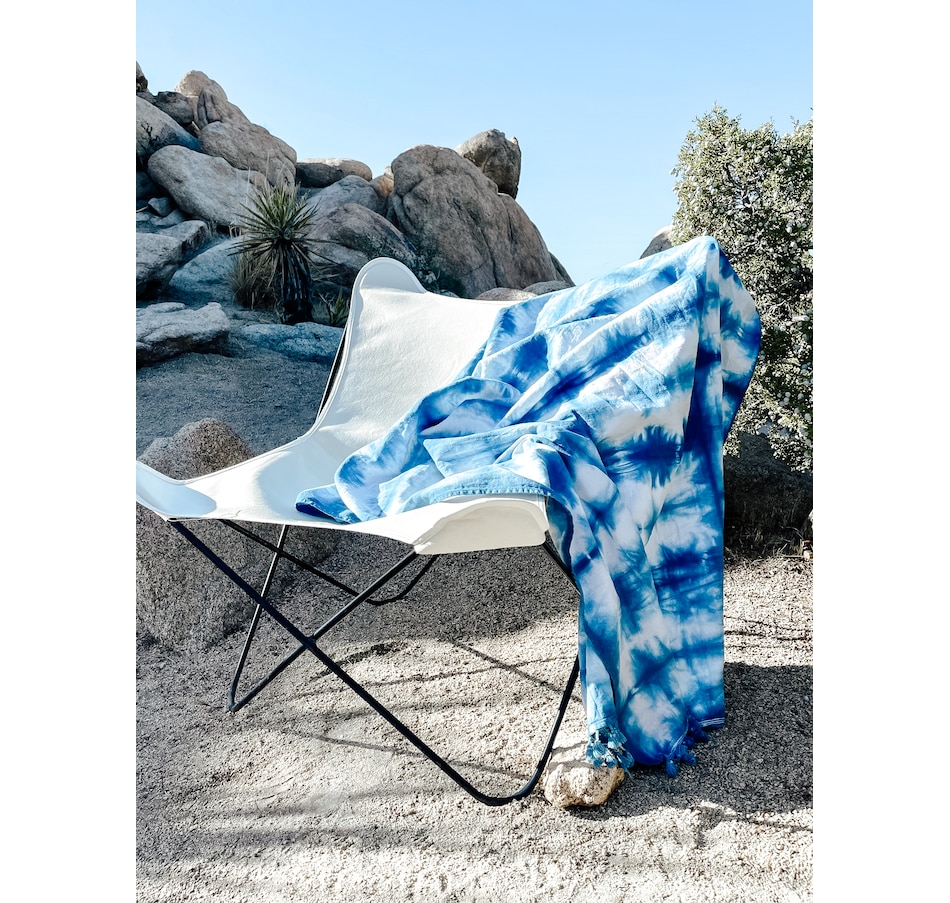 Product: Beach Blanket Indigo-dyedOur limited edition indigo-dyed beach blanket is made from soft yet durable cotton fabric that looks just as good laid out by the ocean as it does tossed over your couch. Handmade and hand-dyed, each piece is as unique as you are.Perfect For:Trips to the beach, picnics or tossed over your favorite chair as a beautiful accent piece.Features & Details:100% CottonHand-dyed Using 100% Natural Indigo DyeDimensions:63" x 48"Care Instructions:Wash separately using cold water on the first rinse cycle, as the dye may bleed due to the hand-dyed nature of this product.* Each piece will vary slightly in hue and patterning due to the hand-dyed nature of the fabric.Give.One.Back™4.4% of our proceeds are donated to help children in foster care through our Give.One.Back.™ program. Learn more about our Give.One.Back™ program.
