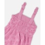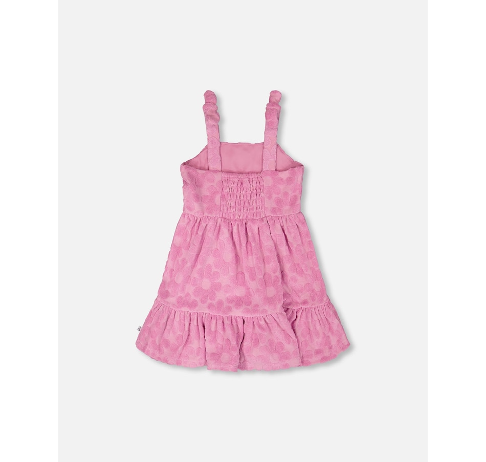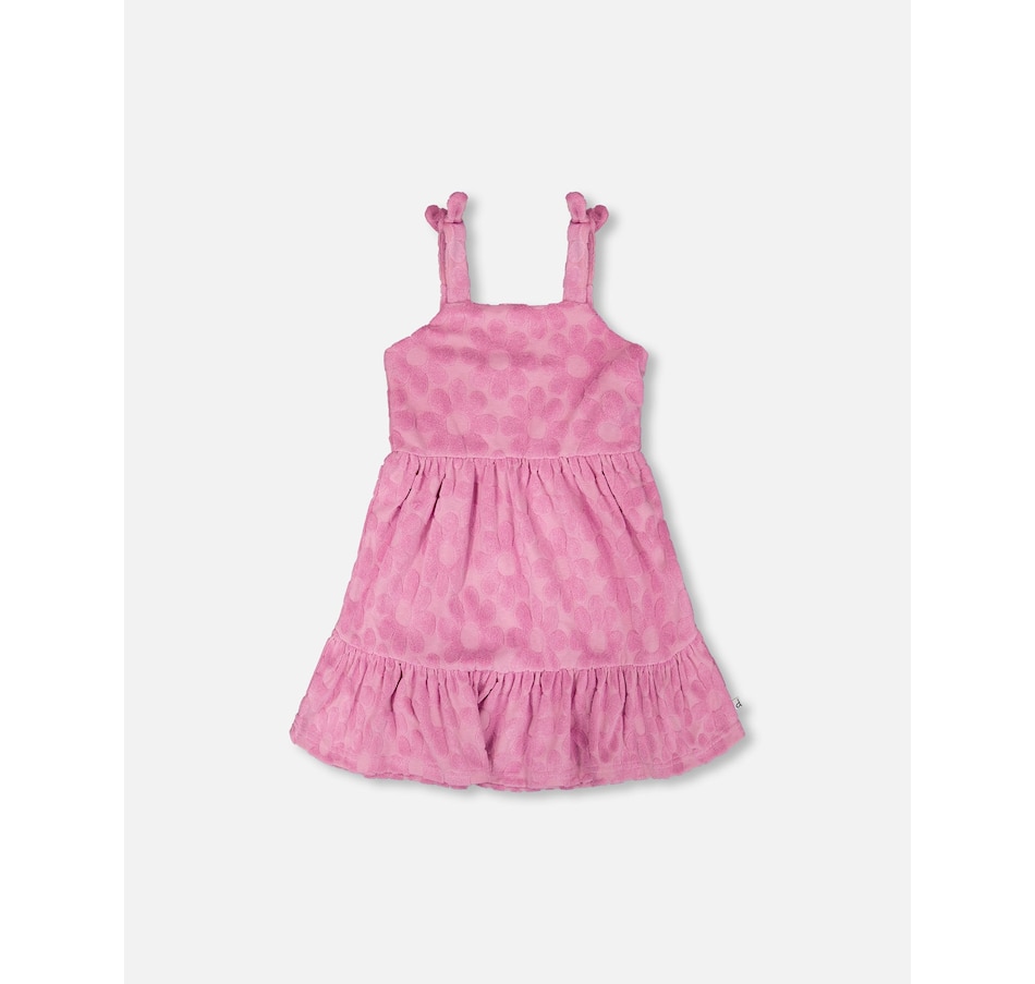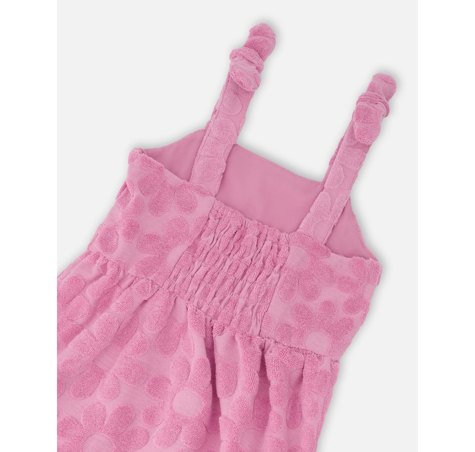 Light and breezy, this beach cover-up dress in pink is perfect for slipping on after a swim. Designed with knotted straps at the shoulders and an allover flower motif, this dress features a relaxed fit and a tiered skirt that flows with every step. Crafted in soft stretch fabric, it offers comfort and ease for long summer days.