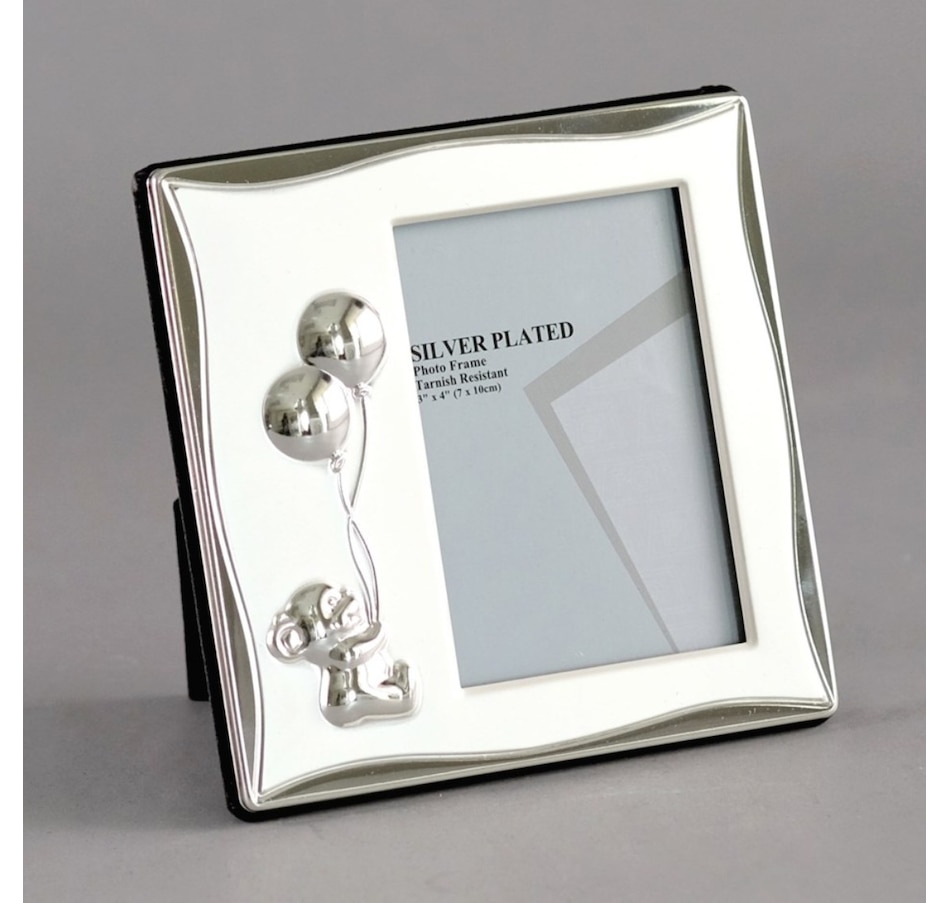 This picture frame is a beautiful way to cherish the precious memories of your baby..This baby photo frame is silver plated, very sturdy and of good quality..Perfect for nursery or bedroom .Photo Size: 3 x 4".Size: 5 x 5 x 0.5"