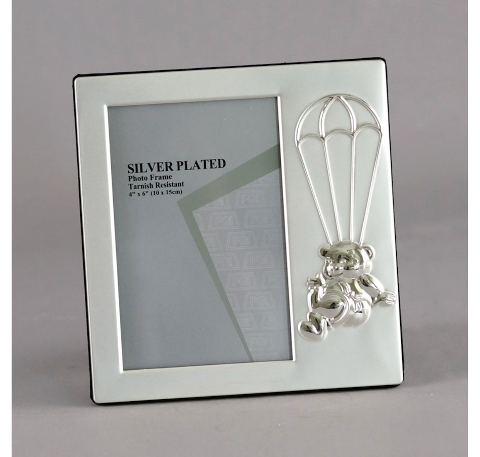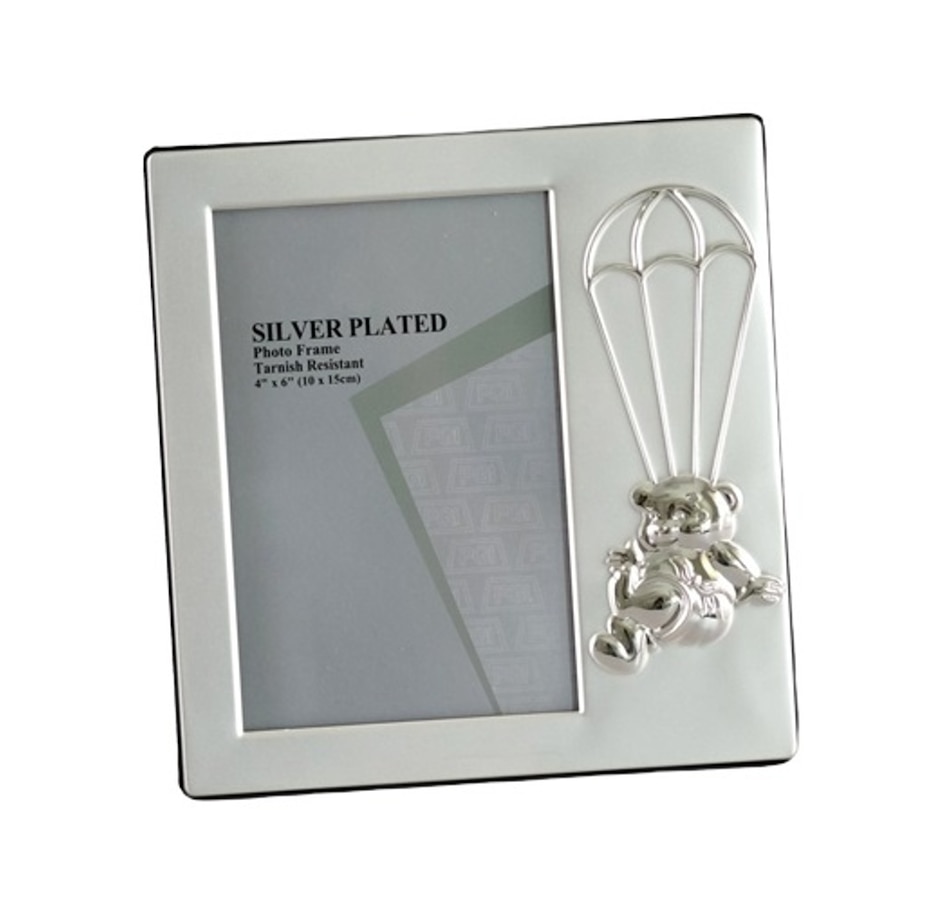 This picture frame is a beautiful way to cherish the precious memories of your baby..This baby photo frame is silver plated, very sturdy and of good quality..Perfect for nursery or bedroom .Photo Size: 4 x 6".Size: 6.75 x 7 x 0.75"