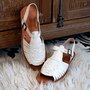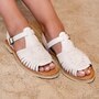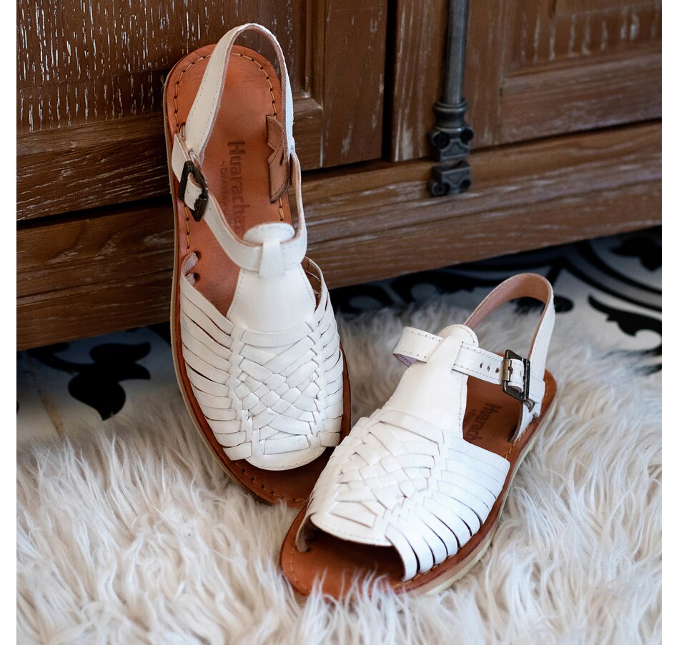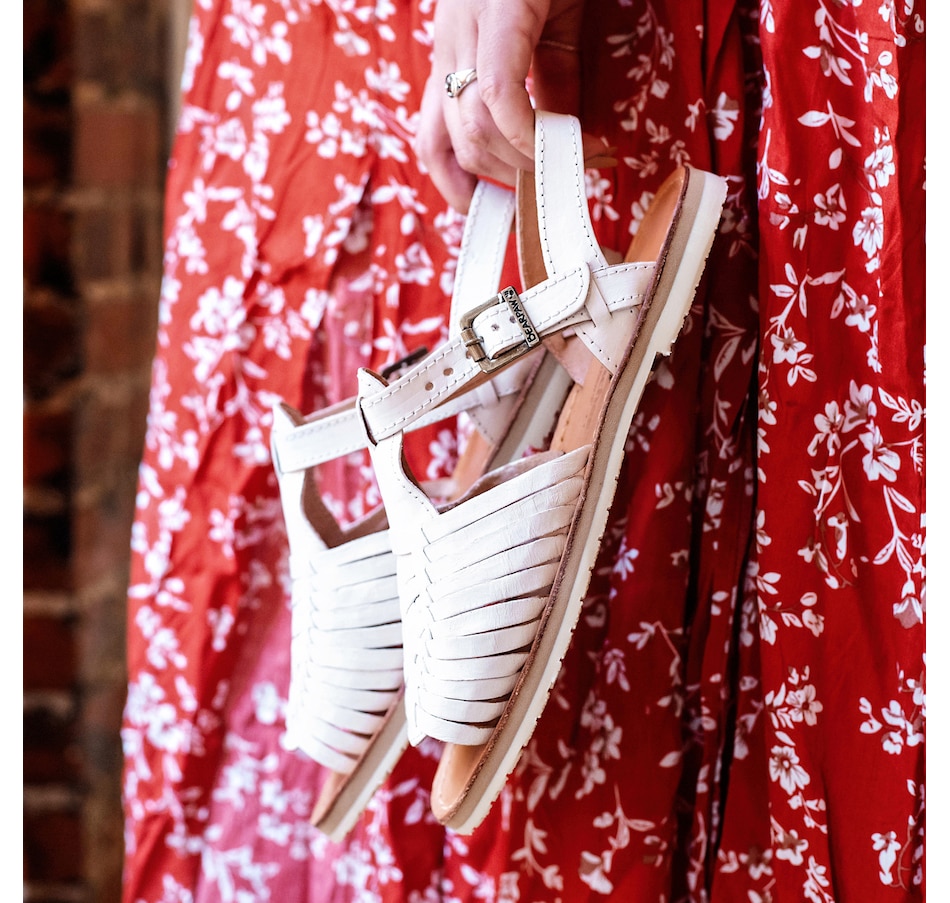 • Ankle buckle closure, open toe