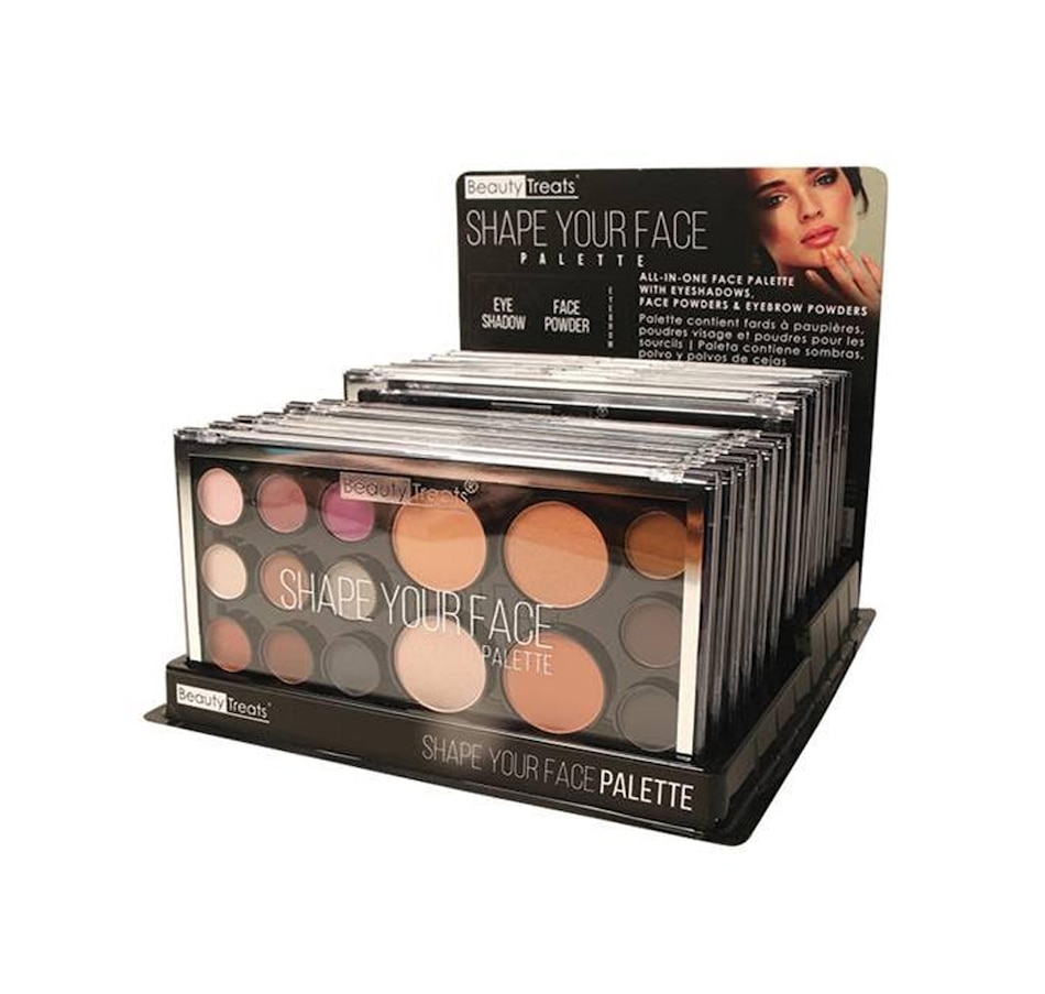 All-In-One Face Palette with eyeshadows, face powders & eyebrow powders. Display Set Contains 12 Shape Your Face Palettes.Net Wt: 0.81 oz. / 23.2 g X 12