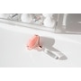 The massaging motion helps temporarily stimulate localized circulation, delivering the appearance of a natural subtle flush to the skin resulting in a temporary, natural-looking radiant glow. Mined from Rose Quartz from Brazil, stones are hand-selected to be carved into Rose Quartz Rollers, which feature an ergonomic handle and sturdy construction. The stone has naturally cooling properties, but the roller tool can be further cooled down by submerging the entire tool in cold water, then drying it completely or placing in the refrigerator for a refreshing feeling and temporary tightening in the appearance of pores and visible de-puffing benefit when rolled over skin. Roller tool can also be placed in warm water then drying it completely to heat the stone for a warm, relaxing sensation.