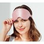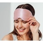 A luxurious silky sleep mask in a beautiful rose gold shade, perfect for travel or use at home.