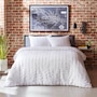 Add elegance to your bedding ensemble with the City Scene Orleans seersucker duvet cover set. The chic white duvet cover and coordinating shams feature textured white stripes in between the solid white design. Offers a modern design with unique texture, the duvet cover is wrinkle resistant and machine washable. This duvet cover set features a zipper closure with inner corner ties to keep the duvet secure and in place.