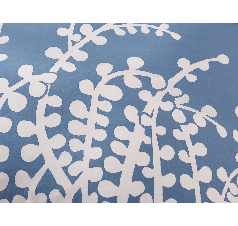 Branches French blue bedding by City Scene surrounds you in the serenity of a pale blue sky that creates a light, airy centerpiece for your bedroom. The modern white branches reach up from the base of the duvet and spread across the sophisticated blue background to create a harmonious blend of elegance and taste. Discover your perfect retreat every time you step into your bedroom.