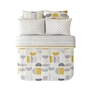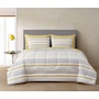 The Kaiser Seven-Piece Mix and Match Bedding Set lets you create your own look for your bedroom with over 30 possibilities. The comforter features a stylish geometric pattern in soft grey colours with a hint of yellow that can be reversed to a sleek striped design. Reversible pillow shams match the comforter patterns. The pillowcases are completely reversible and can switch between a white and grey pattern and a textured yellow print. The flat sheet and fitted sheet are printed in a unique way that enables you to choose between two completely different sheet set prints. This mix-and-match concept makes your bedding extremely versatile, giving you the options to choose between various looks. The entire seven-piece ensemble is made of 100% ultrasoft, machine-washable polyester.