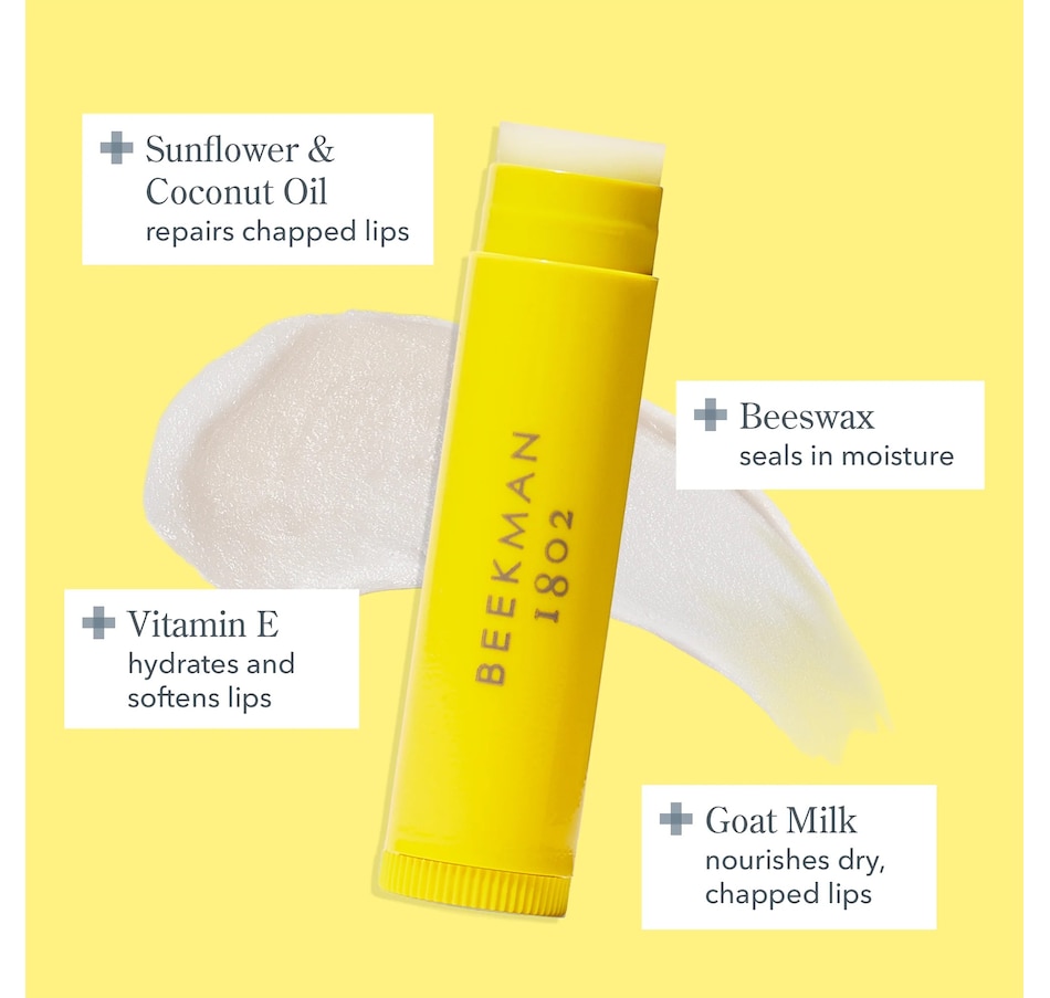 Beekman 1802 lip balms use natural ingredients to help soothe, moisturize, hydrate and protect like no other! They are formulated with vitamin E, organic beeswax, and other natural essential ingredients, including real goat milk for added moisturizing.
