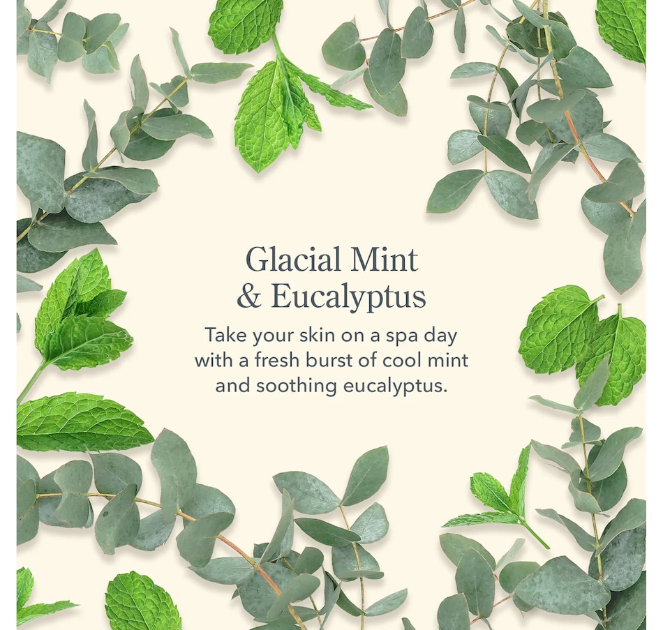 - Glacial Mint & Eucalyptus – take your skin on a spa day with a fresh burst of cool mint and soothing eucalyptus