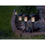 Light up your home and create the perfect ambiance for your garden area with these solar pathway lights from Bell Howell. Each solar stake provides a enchantingly soft glow, and the black finish can adapt to any outdoor setting. Add an extra level of safety or ambiance with the interchangeable functions, and comfortably change the settings using the remote control, shifting the lights from a beautiful flickering flame to a decorative lantern that you can place on any table. Enhance your outdoor space with these solar pathway lights from Bell Howell, available at a great value through TSC!