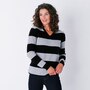 Versatile and irresistible, you'll finish every autumn look in undeniable style with this v-neck striped sweater from Bellina.