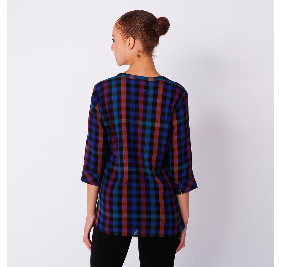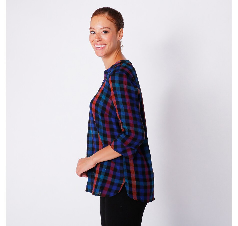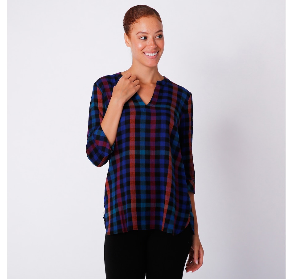 Finish your fall look in classic, centering style with this relaxed fit v-neck top from Bellina.