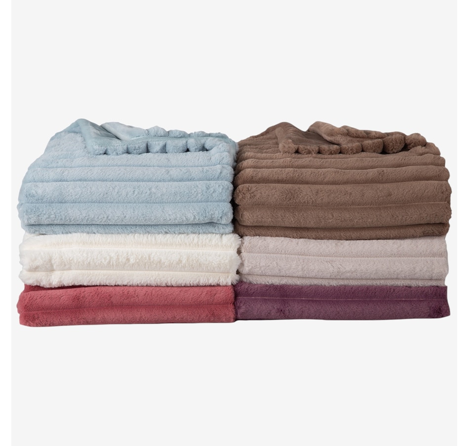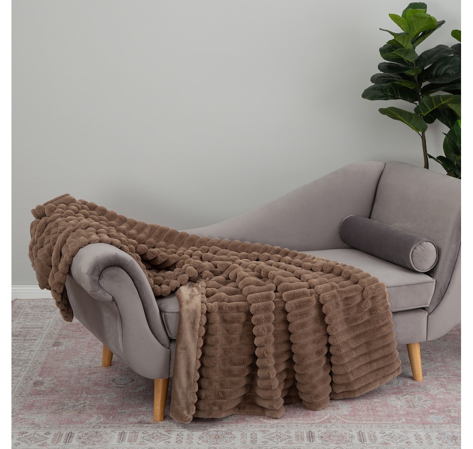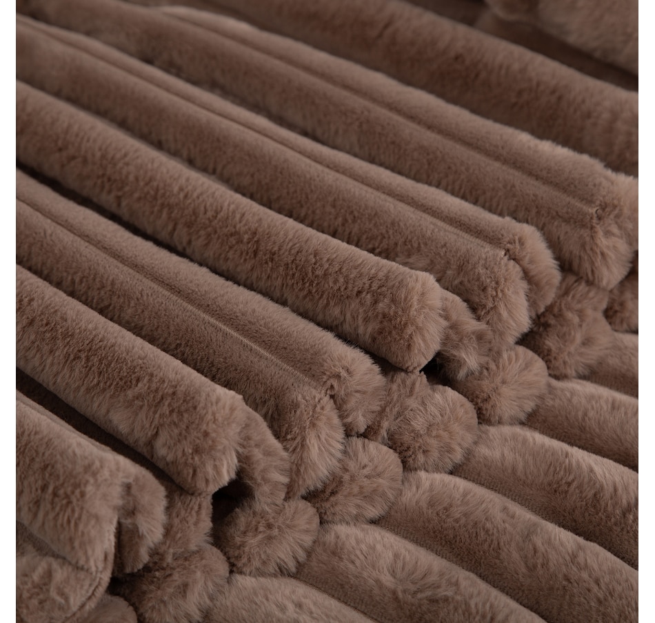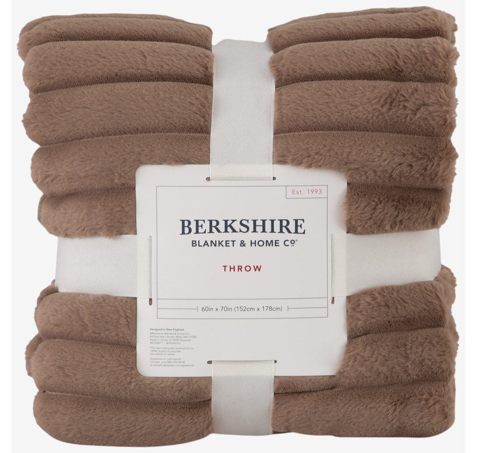 Lounge in luxury with this decadent faux-fur jacquard stripe throw! Manufactured from two of Berkshire Blanket's best selling fabrics, Grace Fur and Velvetsoft, this oversized throw is crafted with high-end materials that offer a silky-soft hand-feel and make you feel like royalty. It also has a beautiful striped texture that gives it some added dimension. Snuggle up to this soft and luxurious throw from Berkshire Blanket, available at a great value through TSC!