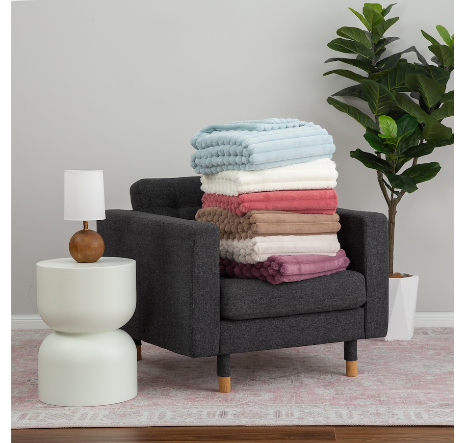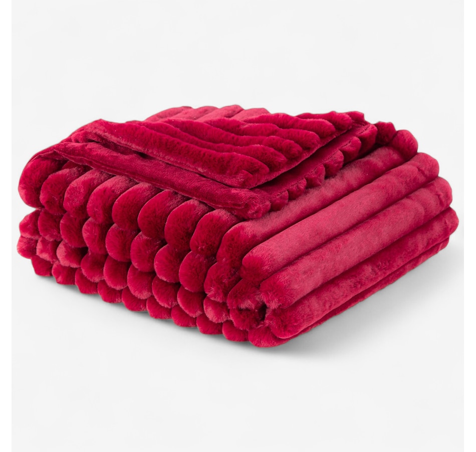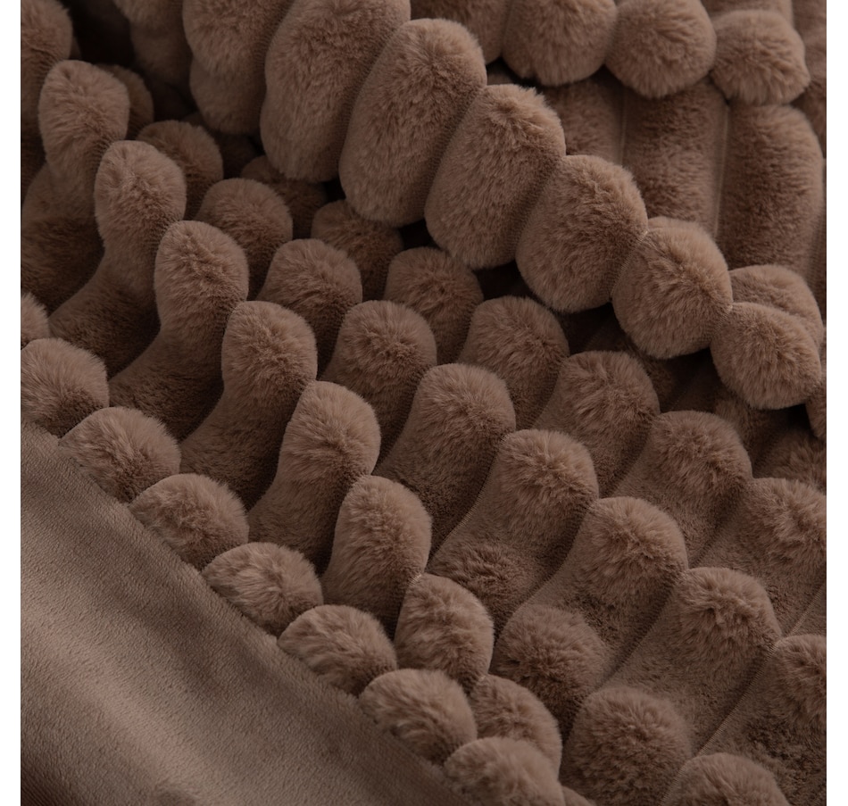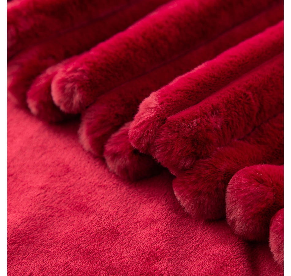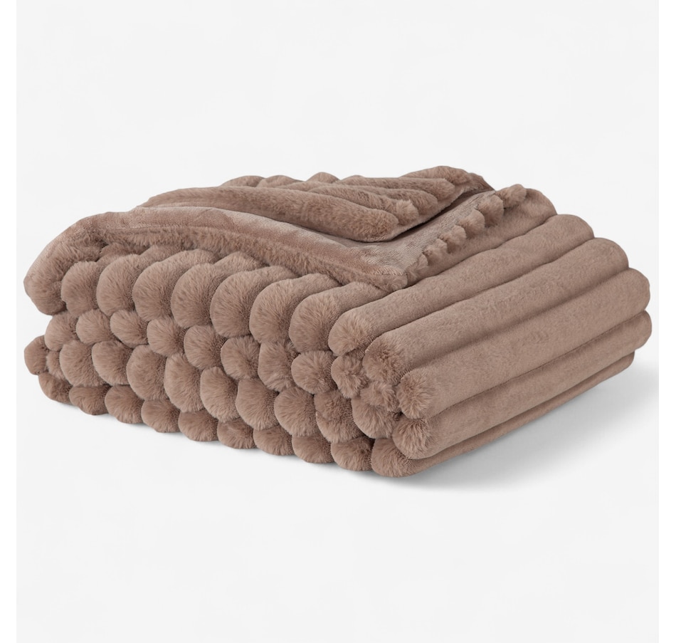 Lounge in luxury with this decadent faux-fur jacquard stripe throw! Manufactured from two of Berkshire Blanket's best selling fabrics, Grace Fur and Velvetsoft, this oversized throw is crafted with high-end materials that offer a silky-soft hand-feel and make you feel like royalty. It also has a beautiful striped texture that gives it some added dimension. Snuggle up to this soft and luxurious throw from Berkshire Blanket, available at a great value through TSC!
