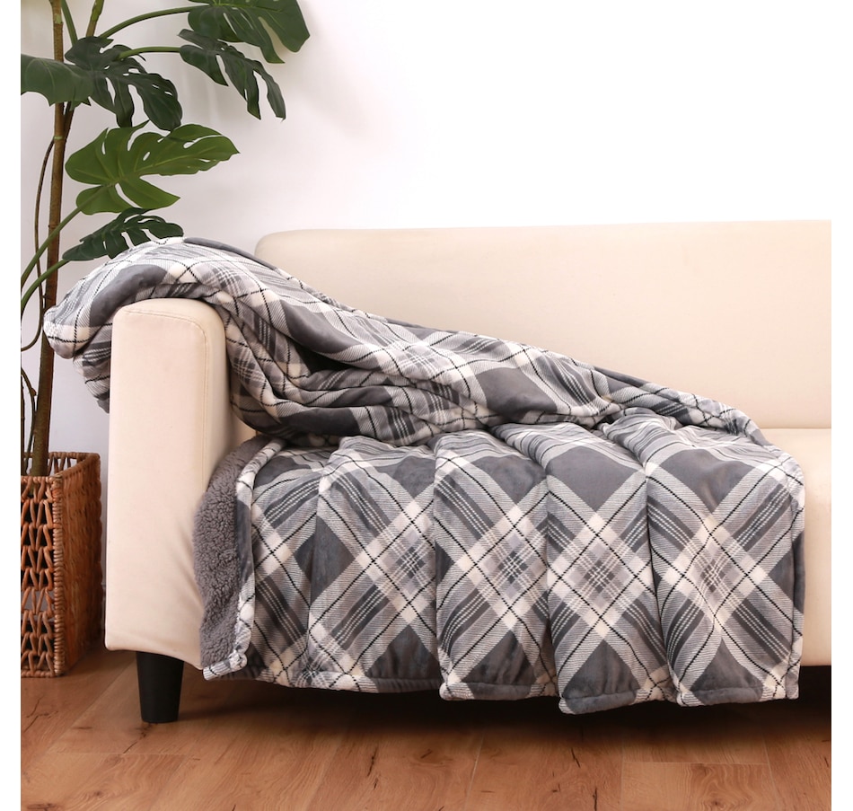 With Berkshire Blanket's softest fabric, VelvetSoft, your house will transform into a comfortable, welcoming home. This VelvetSoft throw reverses to a decadent, insulating Sherpa for the perfect addition to your cool weather decor. Added to your living room to enjoy while relaxing on the couch, or at the foot of your bed for a little extra warmth at night. Designed with Berkshire's most luxurious VelvetSoft fabric, this throw is everything you could imagine. It is soft, warm, and easy to wash. VelvetSoft combined with sherpa creates an ultra heavyweight feel. Available in nine different styles, a plaid print in four colors and five different solids, there is a style to fit everyone's personality. At a generous 60x70 inches, this throw is perfect for watching movies, reading a book in your favorite chair, and snuggling with your pets. Designed with a beautiful, clean borders which has the VelvetSoft fold over onto the sherpa side this throw has the versatility to match any style of decor