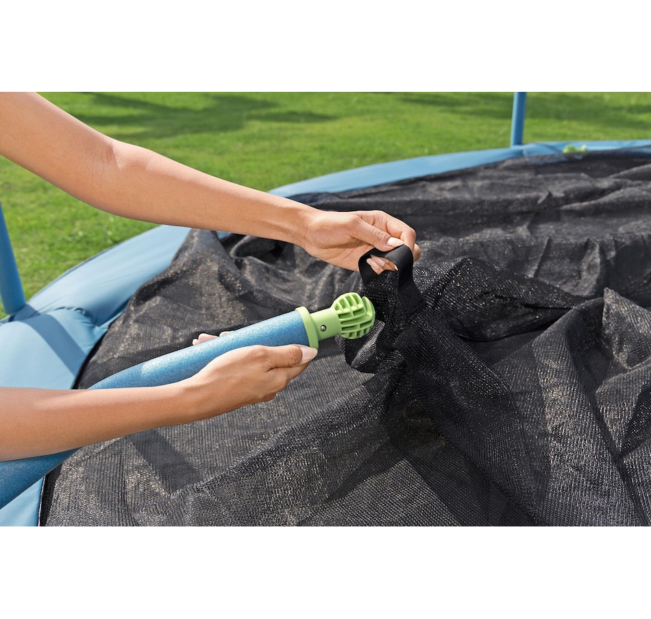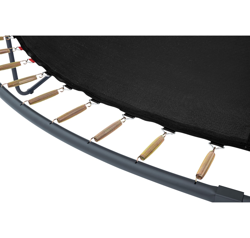 • Composition: powder-coated, galvanized steel (frame); UV-resistant, non-slip polypropylene (jumping mat); UV-resistant polyethylene (enclosure net); EPE foam plus PVC and PE wrapping (spring pad)