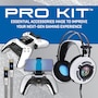 The Bionik Pro Kit has everything you need to be the best at PS5 gameplay. It includes a CLR-50 headset, a dual controller charge base, a controller phone holder, a Lynx charge cable, a USB cable extender and a user manual.