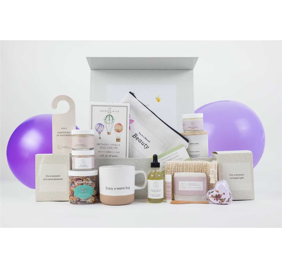 What should I get her for her birthday, you may be asking yourself?This gift set has everything you need to tell that special someone just how amazing she is, on her birthday. This combination of products is a perfect start to the festivities. Let the birthday celebration begin.Birthday gift basket includes: Ceramic Mug Scented Candle Lavender Body Oil Lavender Soap Shower Steamer Heart Lavender Shea Butter Lavender Foot Salt (small) Candy Sparkle Mug Cake Mix Cosmetic Bag Lip Balm Soap Saver Clay Mask Two Balloons Door hang tag Gorgeous box. Make it special and add a name on the lid Your personal note printed free on a beautiful greeting card Personalize your box: You can choose to add the Recipient's Name on the lid in rose gold lettering to make it more personal for a small extra cost. Gift message: During check out, on the cart page, enter your personal message to the recipient.Shipping: -Please choose between free shipping (5-7 business days) or expedited shipping (2-4 business days) during check out. - Orders placed after 5 PM PST will be shipped the following business day. Ship it directly to the recipients: During checkout change to the recipient'sshipping address. At Lizush we believe that you deserve the best! Working hard all week and taking care of your family and loved ones? It's now time that someone else should take care of you! We, therefore, created All Natural products with you in mind: * High-quality all-natural materials. * We use only natural colorant made from spices and herbs * We use only high-quality essential oils for scent Our goal at Lizush is to make you feel good and look your best!
