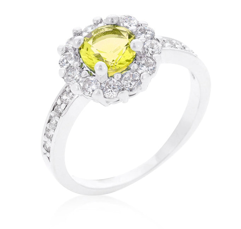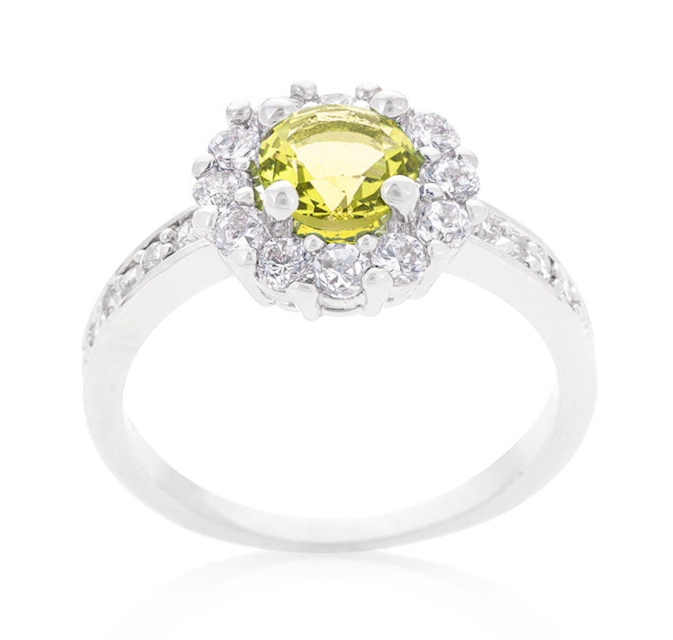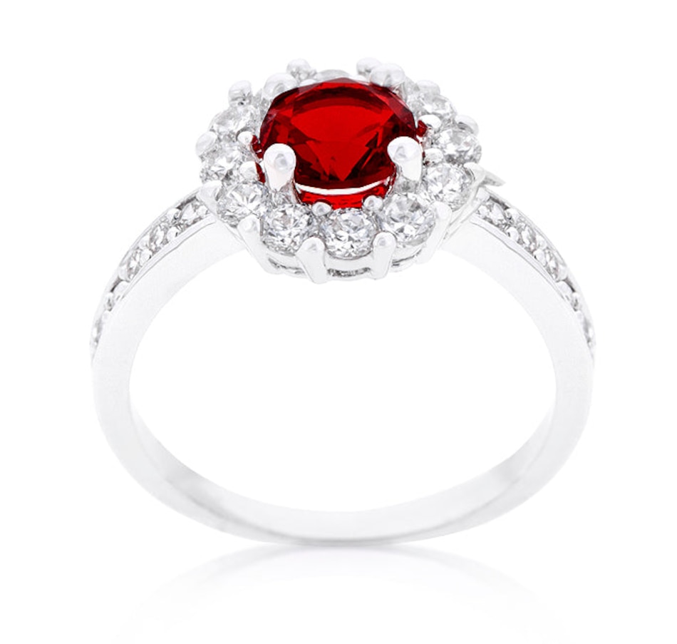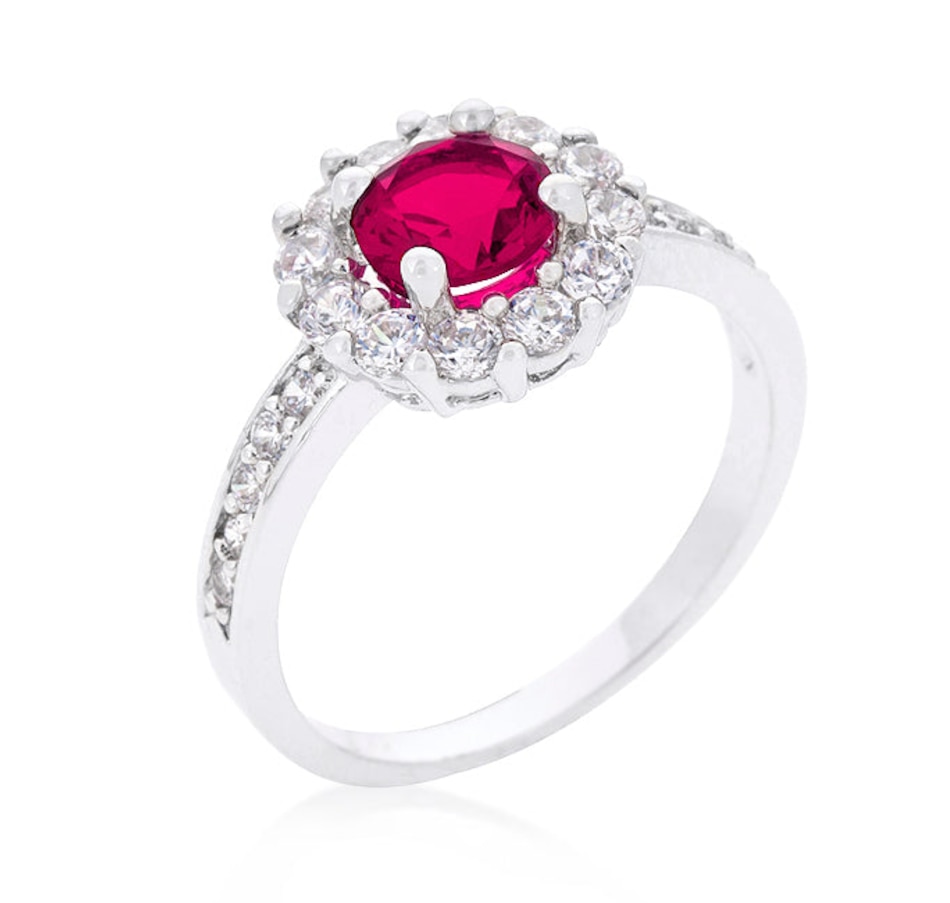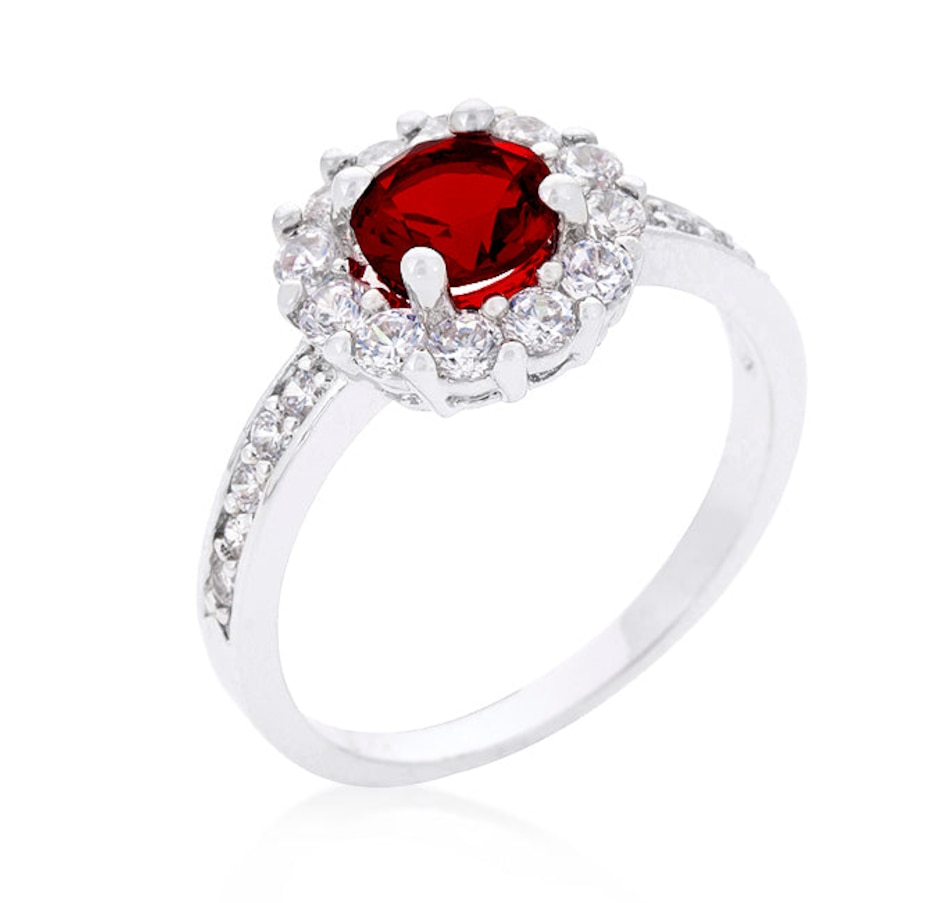 What's your birthstone? Our wonderful Birthstone Engagement Ring is available in 12 different birthstone colors. Get yours today! Our genuine finish is achieved using an electroplating process that coats the item with heavy layers of a close cousin to platinum which gives our jewelry a platinum luster.