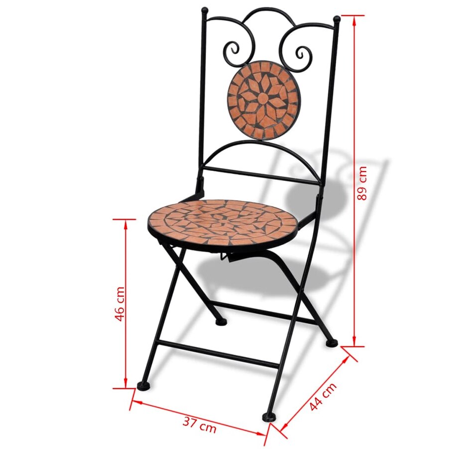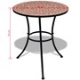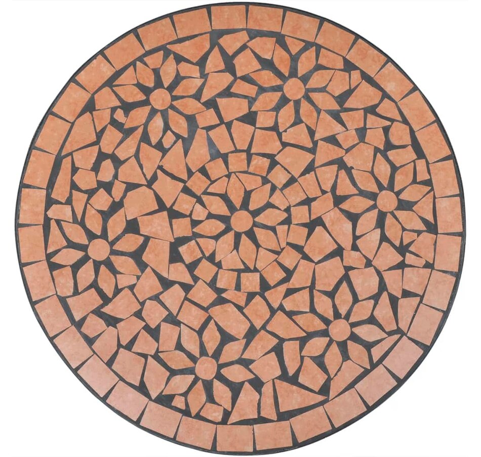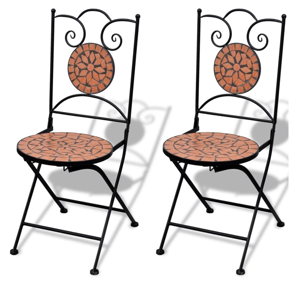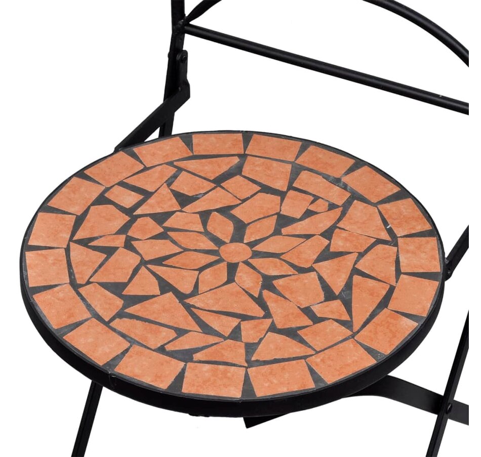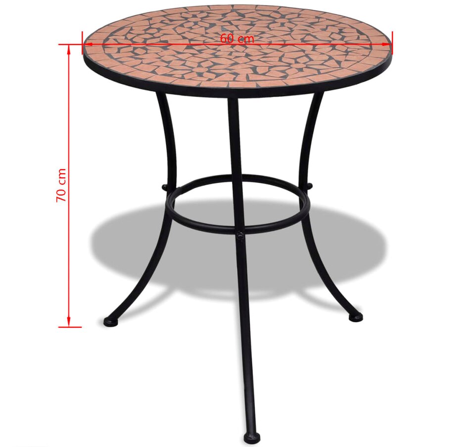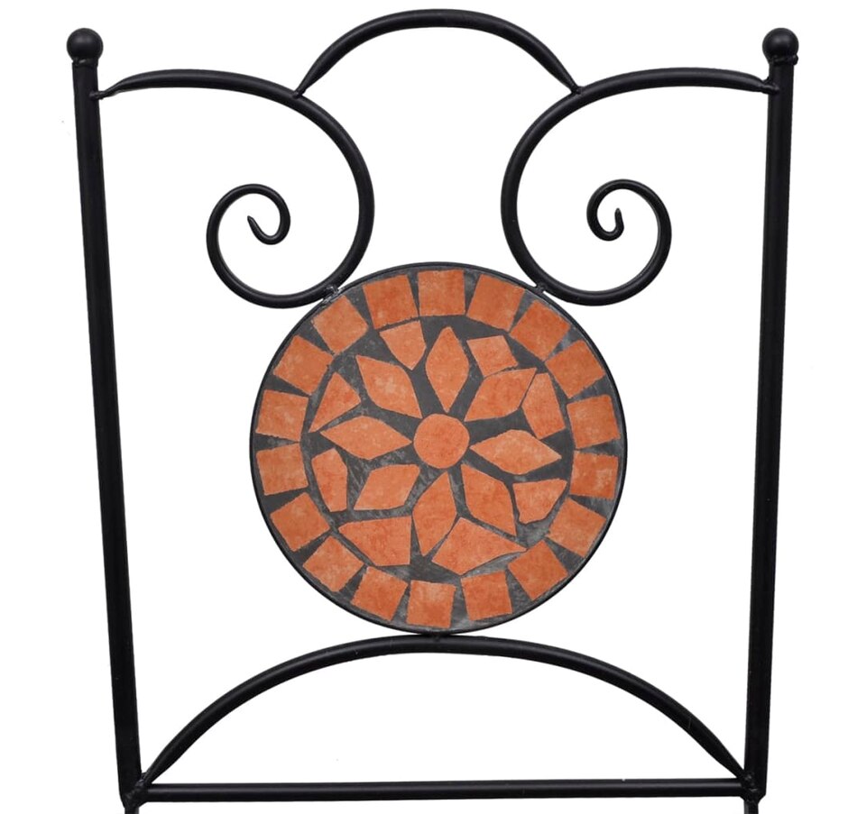 Add a romantic touch to your garden, terrace or balcony with this set of mosaic bistro. It will be a great pleasure to chat with your friends or to take a cup of tea while relaxing on this set of decorative and functional garden furniture. & Nbsp; thanks to its iron coated with strong powder, this set is robust and sustainable. Thanks above the table and seats in waterproof ceramic tiles, this set is easy to clean. & Nbsp; delivery includes 1 table and 2 chairs. Please note that this set is not suitable outdoors.
