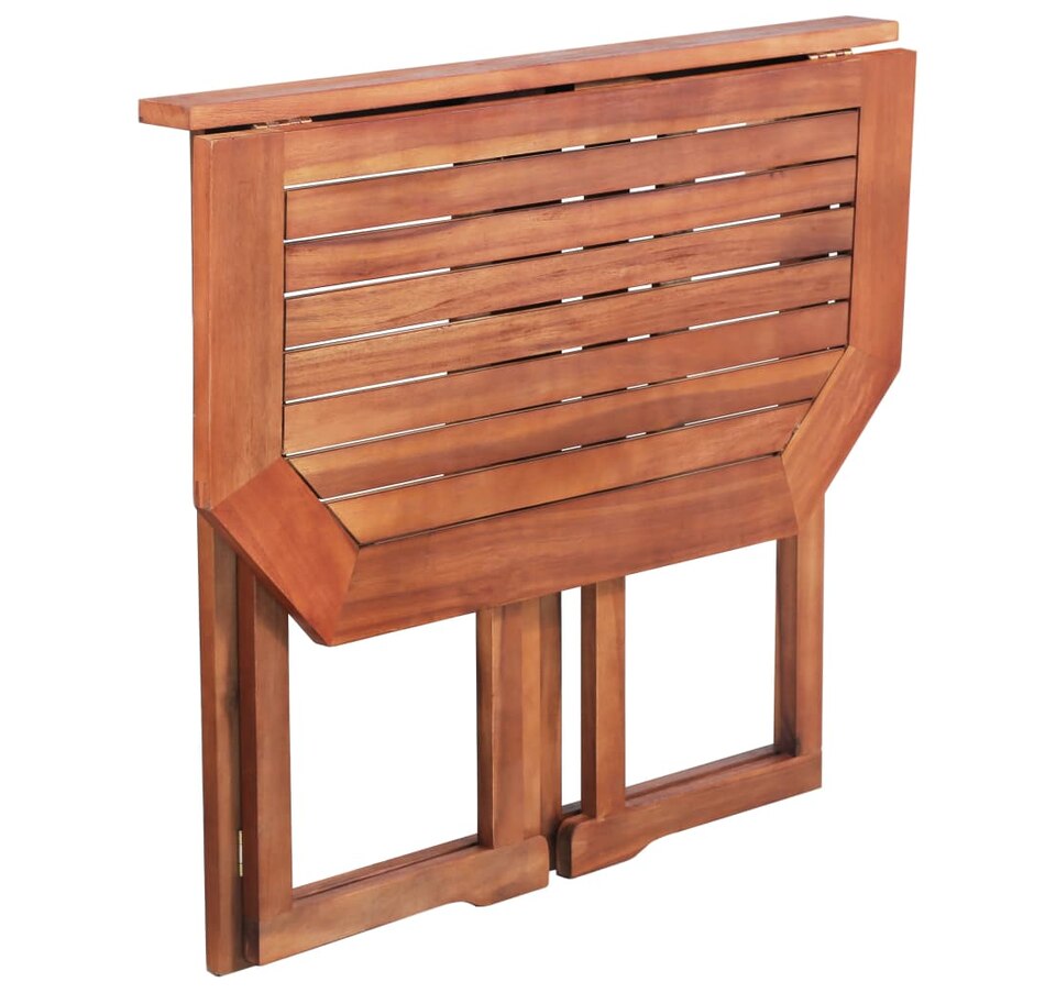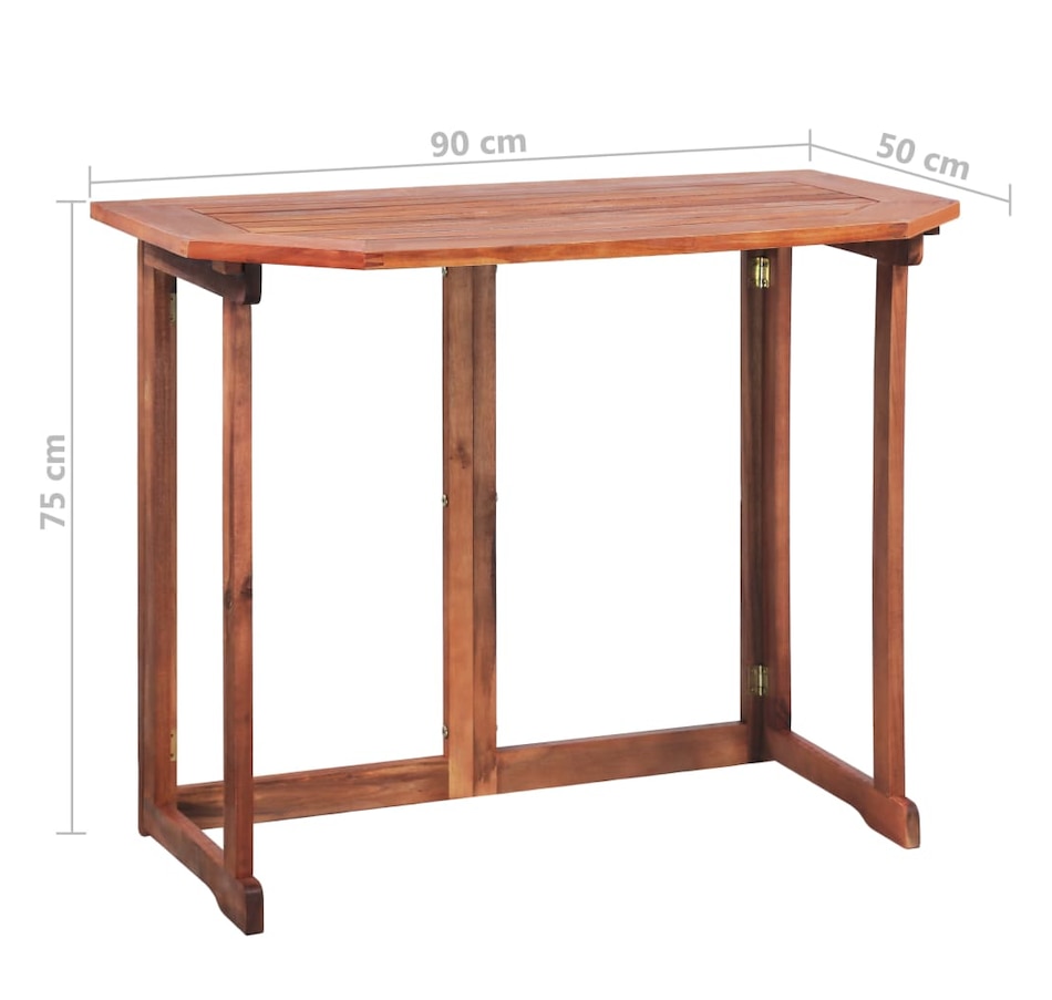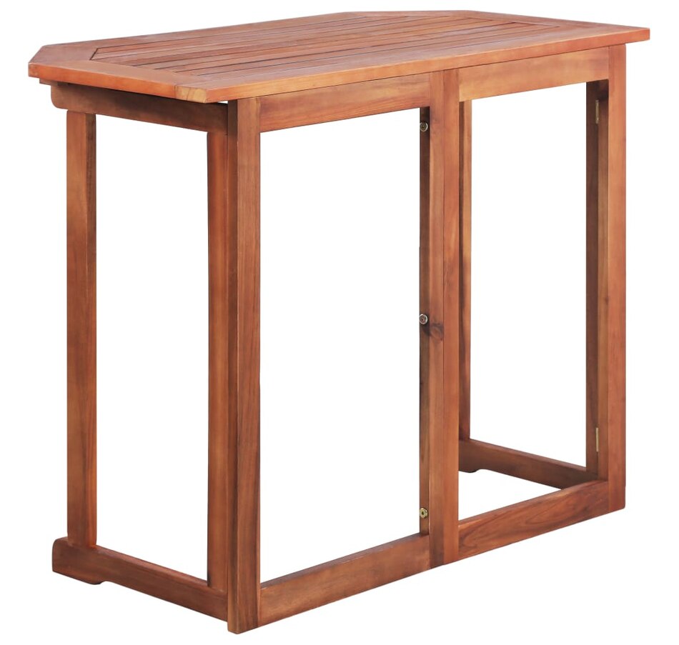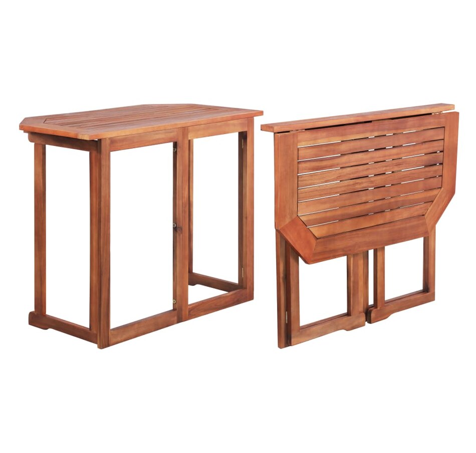 This wooden outdoor table releases a rustic charm and will be an excellent supplement to your outside living space. & Nbsp; The balcony table is in high quality solid acacia wood, a tropical hardwood, weather resistant, very durable and suitable for outdoor use. The oiled surface also facilitates cleaning the table using a damp cloth. The table is foldable to facilitate storage and transport. The table is easy to assemble.