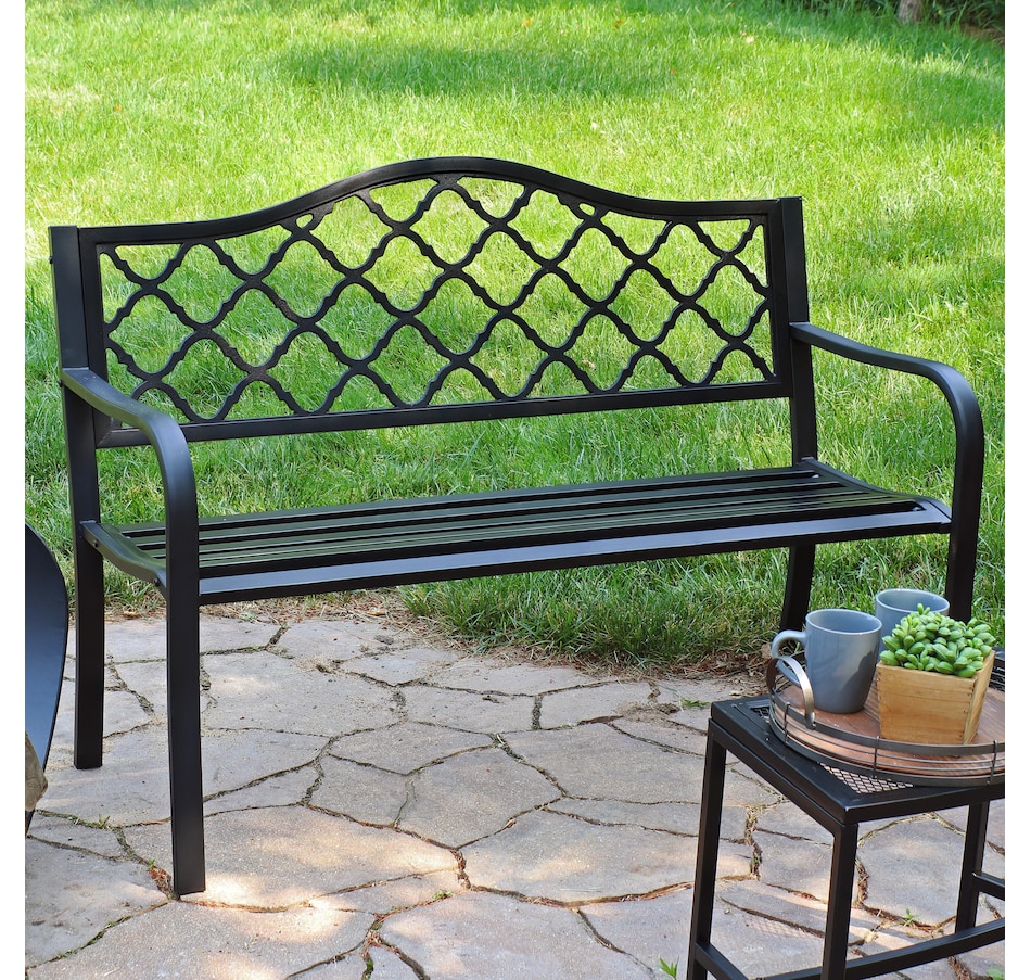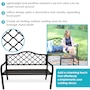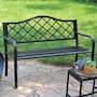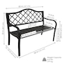 This durable cast iron outdoor bench with a lattice back design can seat up to 2 people, thus making it a great piece for any garden, backyard, entryway, or sunroom to enjoy conversation with a loved one. The contemporary bench frame is sleek, clean, and complements any outdoor furniture with a modern outdoor aesthetic. Weighing only 32 lbs, the outdoor garden bench can easily be moved to any desired location while remaining durable to the elements outdoors. With a weight capacity of up to 615 lbs, 2 people can enjoy many conversations while relaxing on this black, cast iron, lattice back patio bench. Create a comfortable and classy place to unwind at the end of a long day outdoors with a friend, partner, or pet. Enjoy reading a book, drinking morning coffee, or simply relaxing anywhere outdoors in style and with ease on this bench.