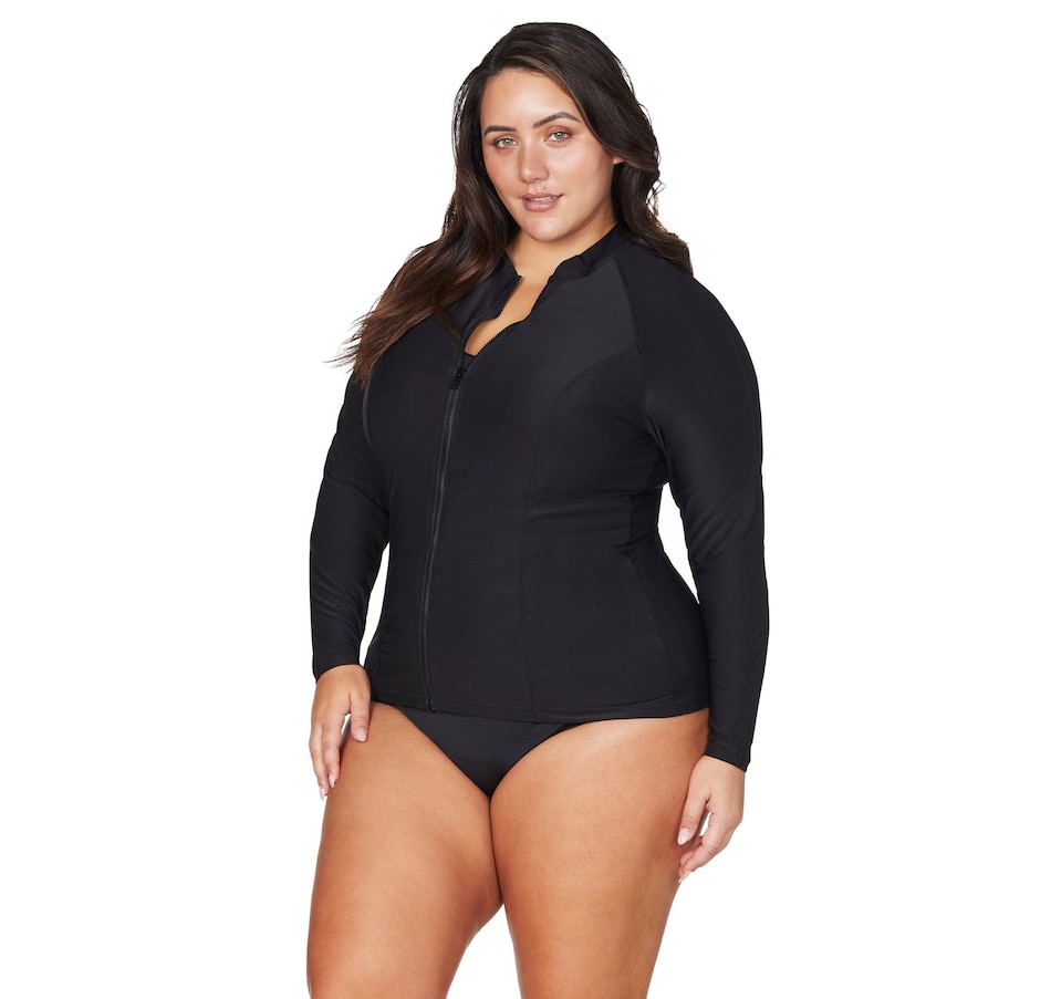 - Sunsafe UPF 50 - The fabrication on our curve fit and plus size sun safe swimsuit styles protects skin from the sun, UPF 50
