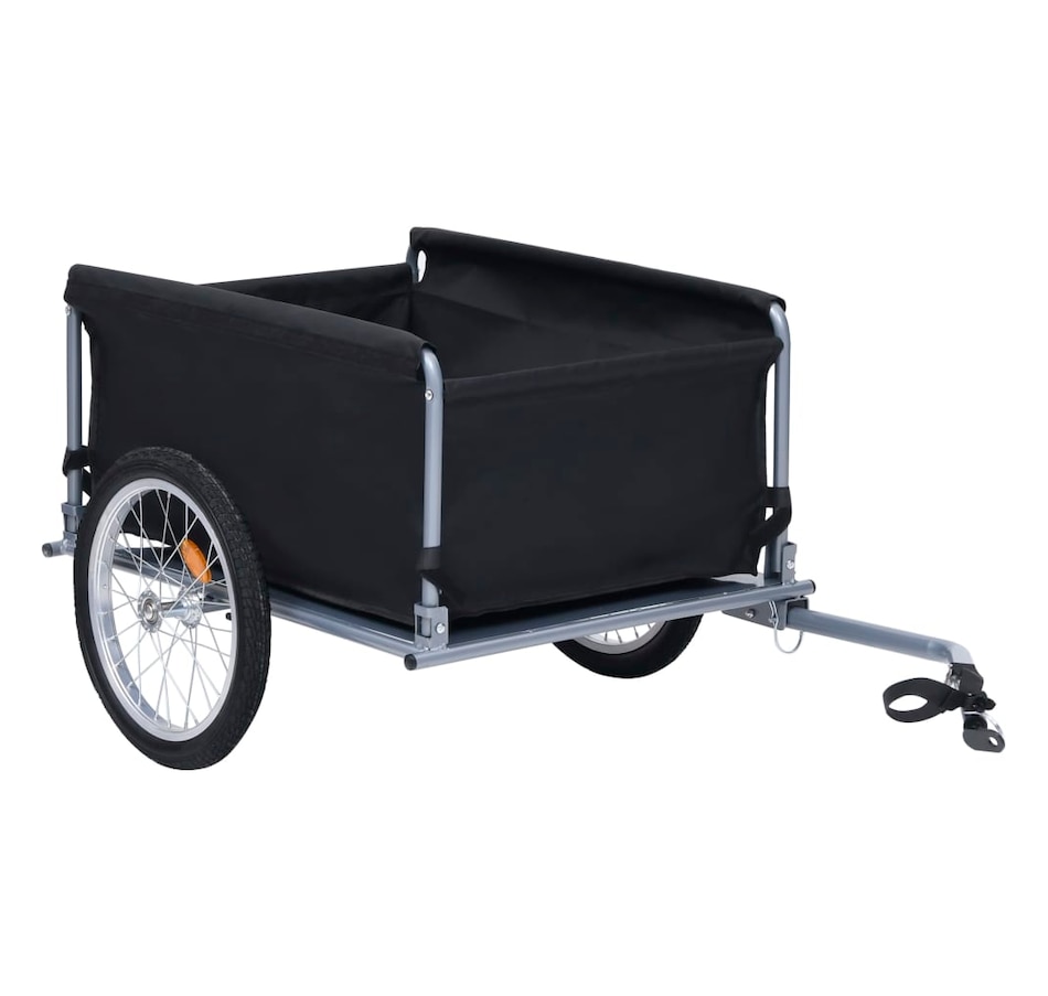 This versatile bicycle trailer has a maximum load capacity of 65 kg. It is a perfect choice for local travel or long-distance tours. The frame of this bike trailer is made of steel, which makes it very sturdy and durable. Thanks to the 100% polyester fabric, the included luggage compartment with included lid is water resistant. Additionally, it has a ball coupling design for quick attachment to the bike. The foldable tow bar and quick-release tires make this trailer a real space saver in terms of storage and transport. High visibility colored reflectors are designed for added safety. The luggage compartment is easily removable with hook and loop fasteners.