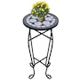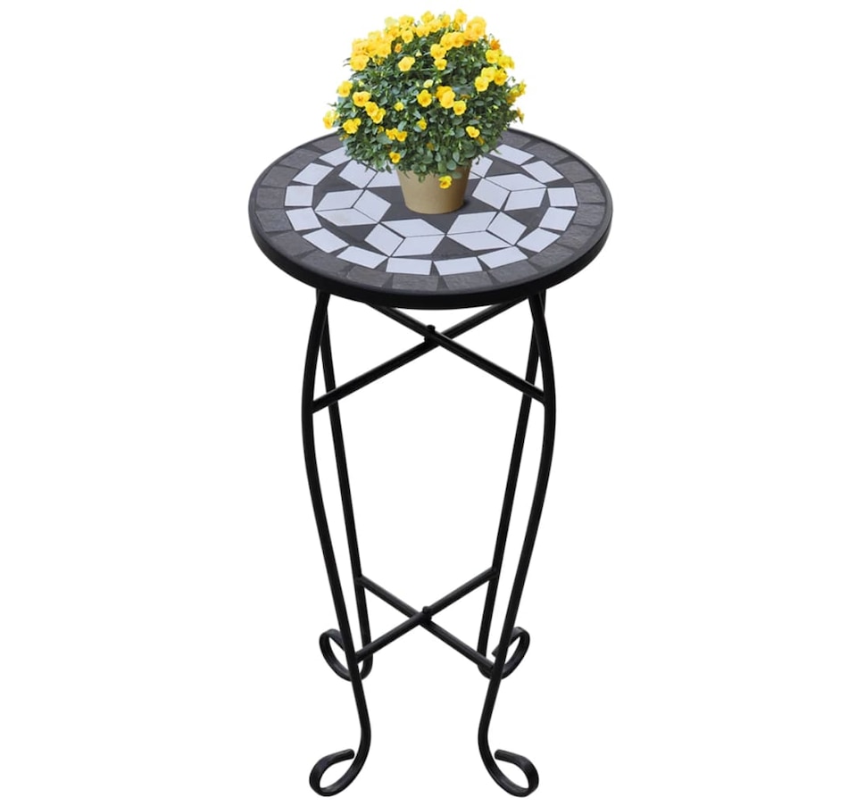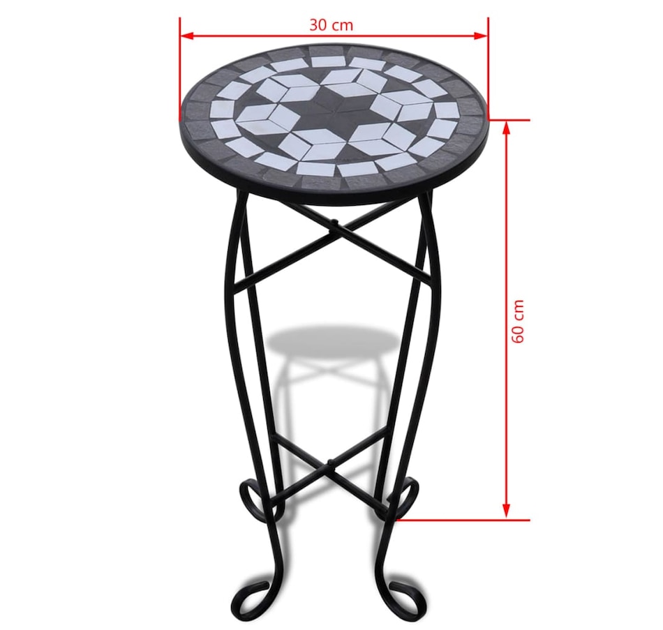 This plant table has a weather-resistant mosaic table top and stylish curved legs. It will surely become an eye-catcher in your garden, on your balcony, terrace, etc. With a diameter of 30 cm, the table can also be used as a side table to rest your drinks. Its iron frame contributes to the sturdiness, while the ceramic table top is also easy to clean. It is very durable for long term use. Please note that this product is not suitable to be left outdoors in cold conditions.