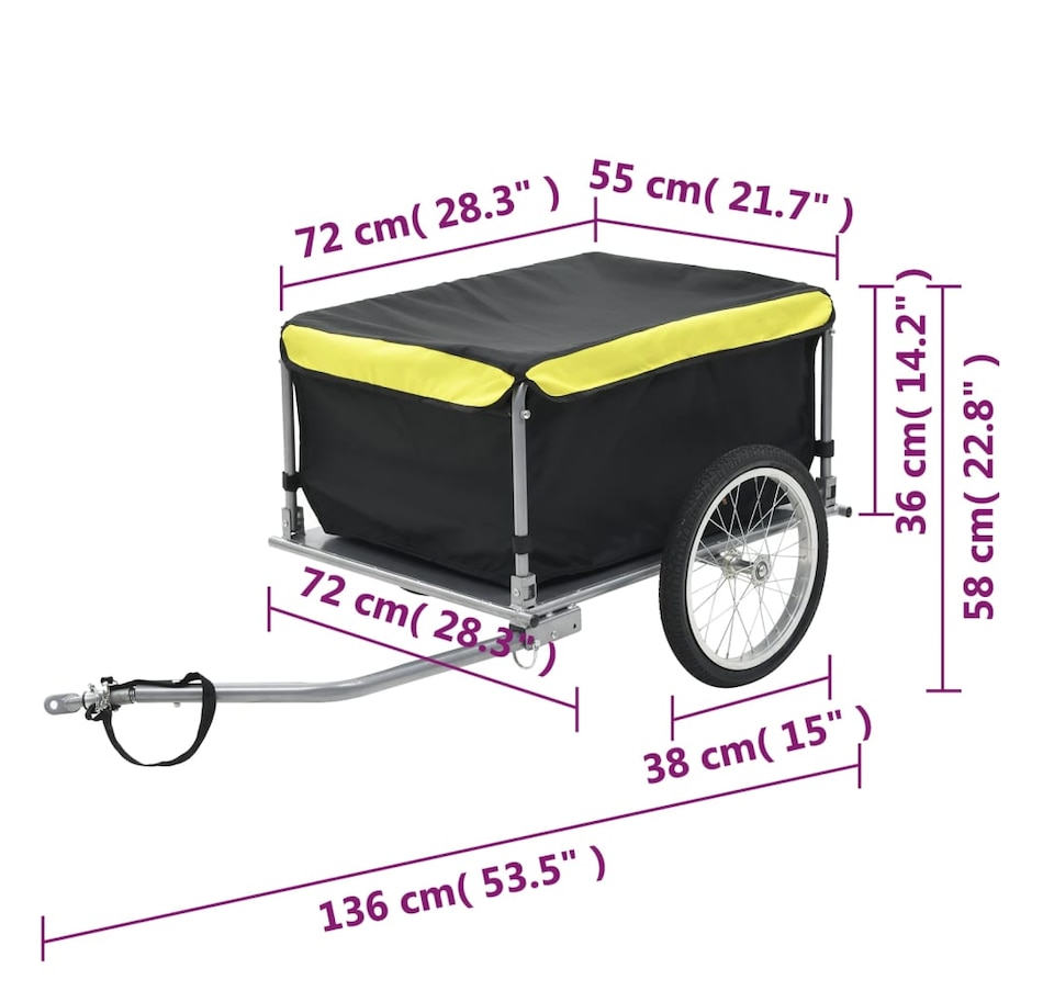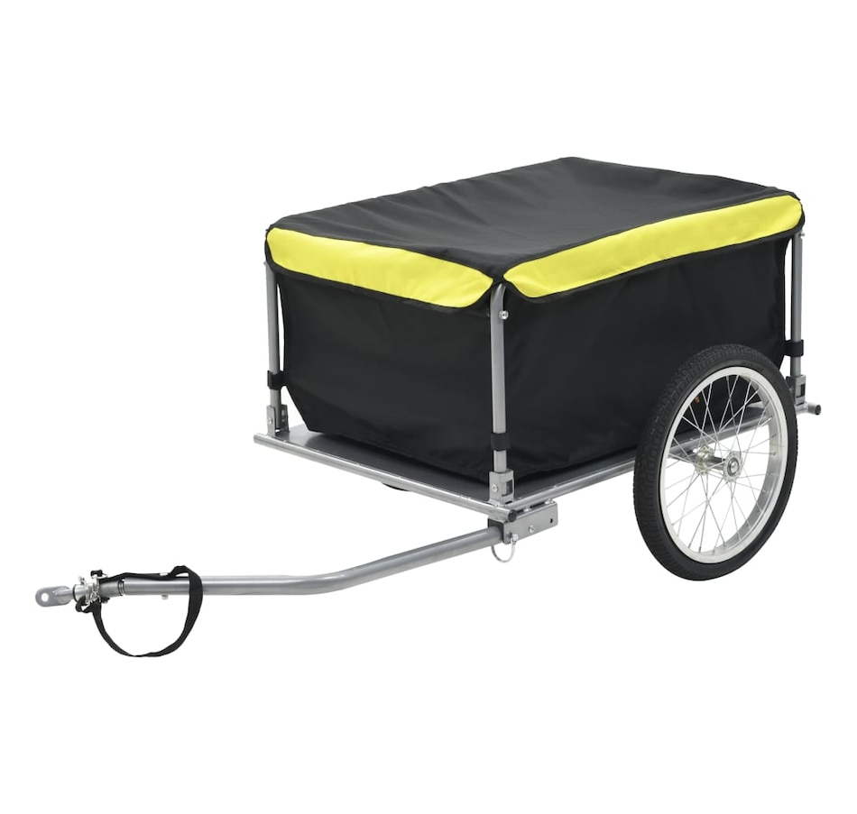 This versatile bicycle trailer has a maximum load capacity of 65 kg. It is a perfect choice for local travel or long-distance tours. The frame of this bike trailer is made of steel, which makes it very sturdy and durable. Thanks to the 100% polyester fabric, the included luggage compartment with included lid is water resistant. Additionally, it has a ball coupling design for quick attachment to the bike. The foldable tow bar and quick-release tires make this trailer a real space saver in terms of storage and transport. High visibility colored reflectors are designed for added safety. The luggage compartment is easily removable with hook and loop fasteners. The product is easy to assemble.