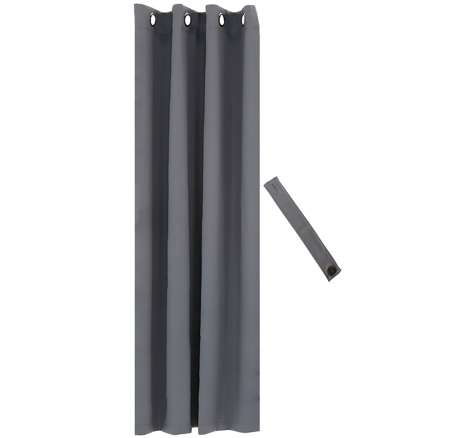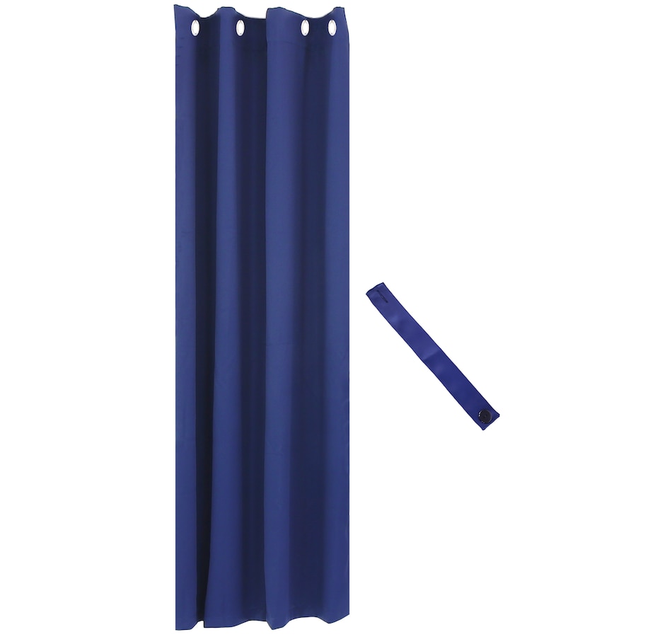 Add a touch of style to any space with this elegant indoor/outdoor blackout curtain. This durable curtain features a triple weave design to filter light and provide long-lasting beauty. Plus, it has AATC 16 color fastness to resist fading. This versatile curtain can be used as a living room curtain, an outdoor privacy curtain for outdoor structures like gazebos or cabanas, or a balcony curtain as a unique decor accent. Hang it in your bedroom to block out light during bright summer evenings and enjoy sweet dreams, or use it on the patio to get relief from the sun during hot days. Each curtain panel features stainless steel grommets for a modern look. Plus, a convenient tieback is included to keep the curtain neatly arranged.
