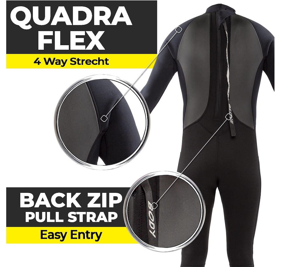 4 way quadra flex stretch wetsuit material for mobility and comfort when bending and maneuvering during different types of water activities.