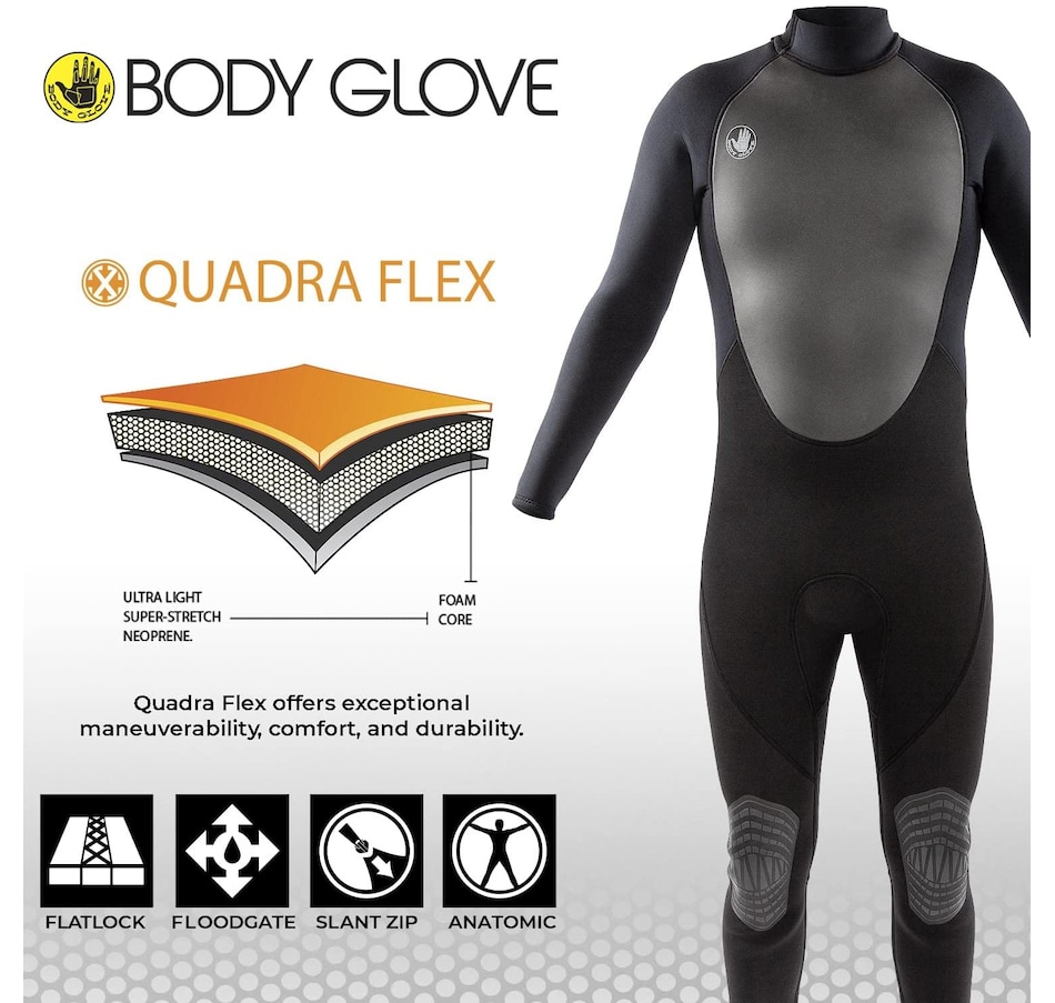 Body Glove Pro3 spring wetsuit It is made from neoprene with high stretch 4-way quadra flex stretch technology. Lightweight performance without sacrificing flexibility or thermal properties.