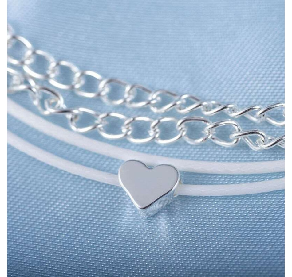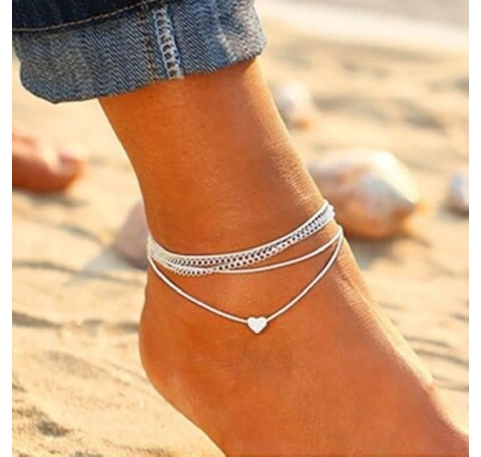 Bohemian Silver Heart Multi Chain Anklet Ankle BraceletMetals Type:‚ Copper AlloyStyle:‚ Bohemian 2PC Multilayer AnkletShape\pattern:‚ Heart AnkletMaterial:‚ (one Silver Ankle Bracelet and one White with Silver Heart Ankle Bracelet together create a multilayered look)Women Anklet Ankle BraceletWrap it 2 times to create the look.Approx 9" with a 2 " extension