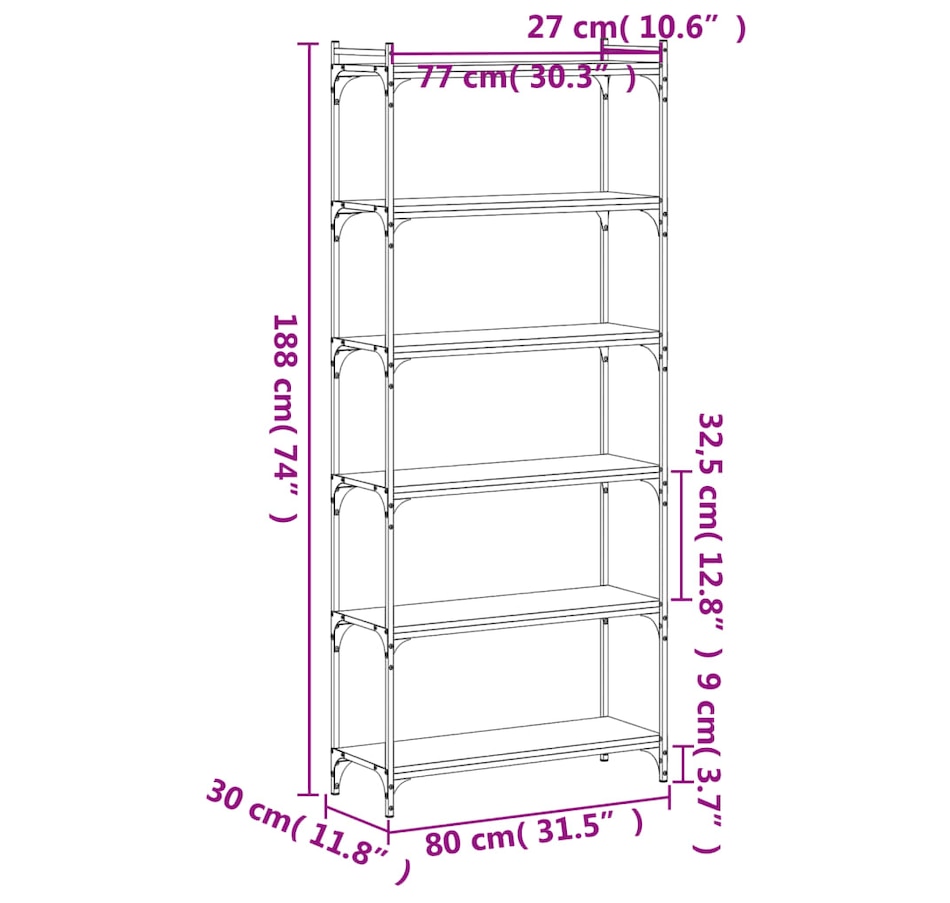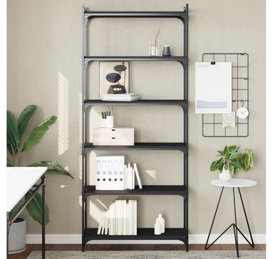 This bookcase offers an ideal solution for organizing your books and will be a decorative yet practical addition to your interior decor. Durable Material: Engineered wood is of exceptional quality with a smooth surface and also exhibits strength, stability and moisture resistance. Made of engineered wood, the book shelf is easy to clean. Plenty of Storage Space: The bookcase provides ample storage space to keep your magazines, books, decorative items and other daily essentials well organized and within reach.Adjustable Feet: Four adjustable feet with plastic caps keep the book shelf balanced on uneven ground and increase its stability.Metal Frame: The metal frame adds industrial style to your home while ensuring durability and stability. Caution: To prevent it from being knocked over, this product must be used with the wall mounting device provided. Good to know: Screws and dowels for the inside of the wall are not included. We advise you to find and use screws and anchors specifically suited to your walls. If you are unsure, you can consult a professional. Please read and follow each step of the instructions.