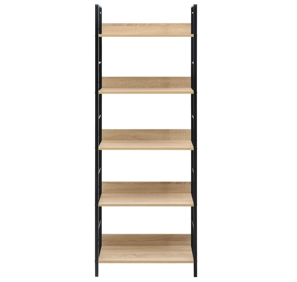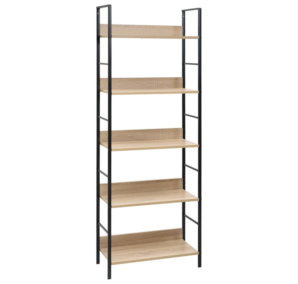 This 5-tier bookcase can be used in the living room as a book shelf or decorative display, or on the patio as a display rack for plants, etc. It is a timeless addition to your interior decoration. The shelf is made from engineered wood, making it easy to clean with a damp cloth. The sturdy steel frame makes it rust-proof and adds to its industrial style. The storage rack features a compact design, making it the greatest use of limited space. This cabinet has 5 tiers, giving you ample space to store and display your collection of books, flowers, CDs, DVDs as well as other decorative items. Our standing shelf is easy to assemble.