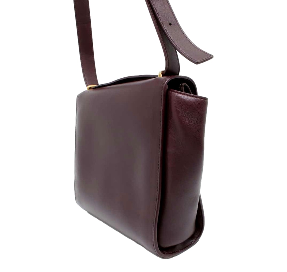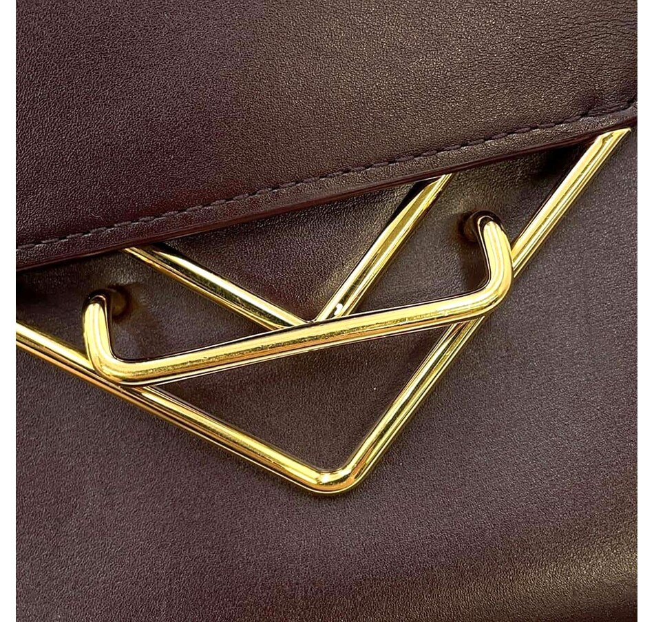 The Bottega Veneta The Clip Women's Shoulder and Crossbody Bag (Model 652391) is a richly hued Italian masterpiece in luxurious calfskin leather, finished in a stunning deep grape color that makes an effortlessly bold statement. Practical yet refined, the spacious open compartment is complemented by a front pocket and an interior zipper pocket, all wrapped in a sumptuously soft leather lining. Gold hardware adds a warm, polished contrast to the deep purple exterior, while an adjustable leather strap with a 20.75" drop ensures a comfortable, customizable fit arriving complete with a dust bag and authenticity cards as a true mark of Bottega Veneta's storied Italian craftsmanship.