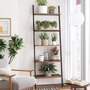 Add some industrial charm to your living space with this 5-tier industrial style ladder shelf by Boutique Home. With its sturdy matte-black steel frame, x-bars, and rustic dark brown shelves, the mix of styles really make this elegant bookcase stand out. It boasts individual character, remarkable durability and a great bearing capacity of 11 lb per level. The steps get wider from top to bottom, offering plenty of space for creativity: line the shelves with green plants, books, decorations, or picture frames for a truly unique storage display. And best of all, there's no hassle to assemble the unit. With the simple instructions that are included, simply put the numbered parts together and attach the unit to the wall with the included tool and anti-tip kit—you’ll finish the assembly with ease!