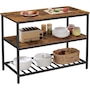 Add industrial flair to your home with this versatile kitchen island. It offers both style and functionality, featuring a spacious worktop that allows you to prepare food with ease and even accommodates your toaster or coffee machine for added convenience. With its three-tier storage design, you can place decorative items on the top shelf, kitchen appliances on the middle shelf, and storage boxes with bakeware on the lower grid shelf, keeping everything neatly organized and easily accessible. Standing at a 35.4" height, this piece can serve as a breakfast table for a quick bite, a coffee bar for your coffee machine and accessories, or even a bar table for serving drinks, making it adaptable to all your needs. It stays stable with adjustable feet that prevent wobbling on slightly uneven floors and ensures your floor remains scratch-free. Assembling this kitchen island is a breeze, with clear instructions, numbered parts, and an assembly tool included to get you up and running in no time. It enables you to comfortably prepare meals, while providing enough room to keep appliances like a toaster or coffee machine within easy reach.