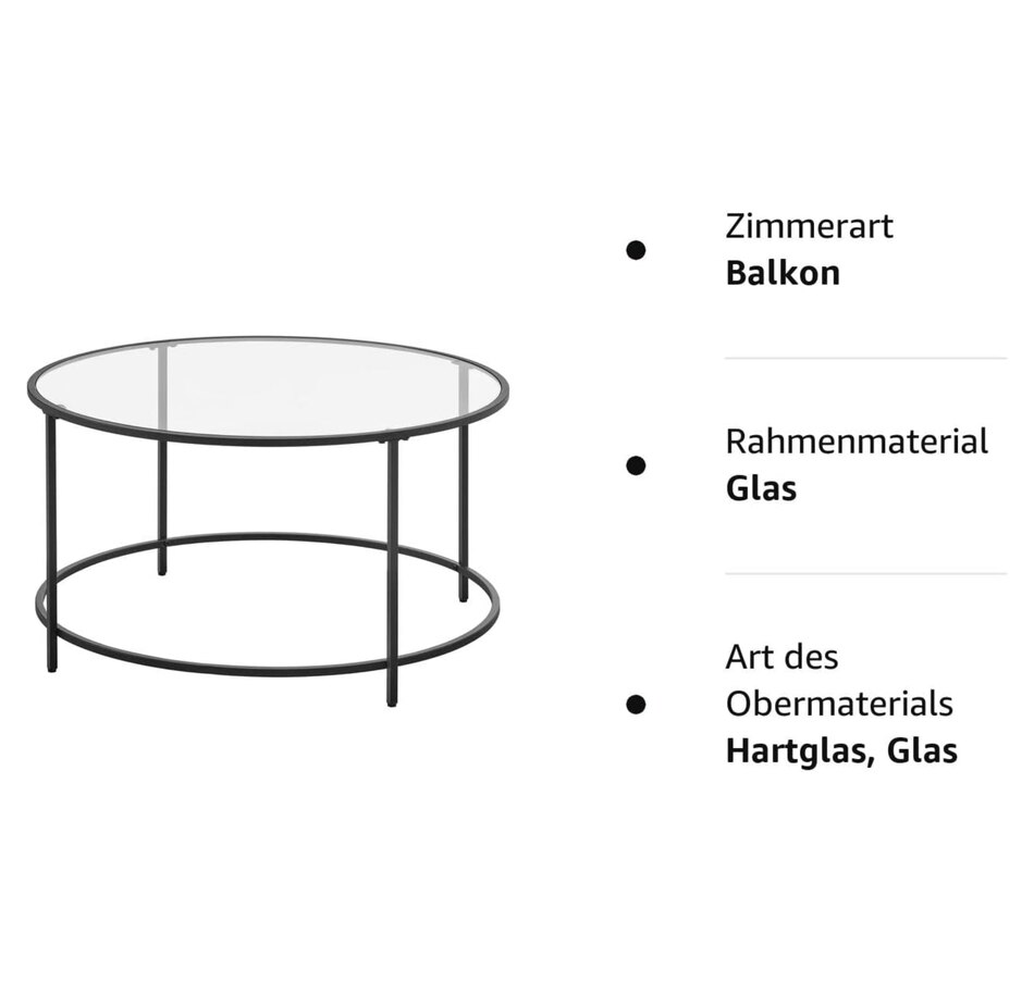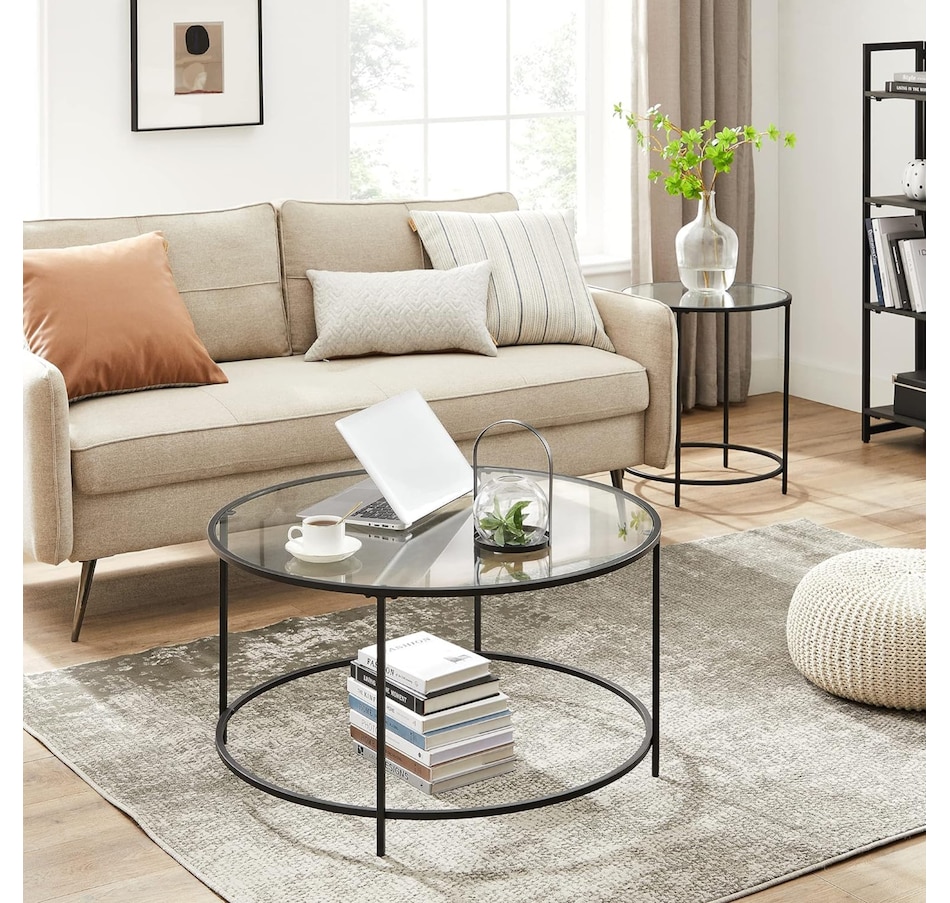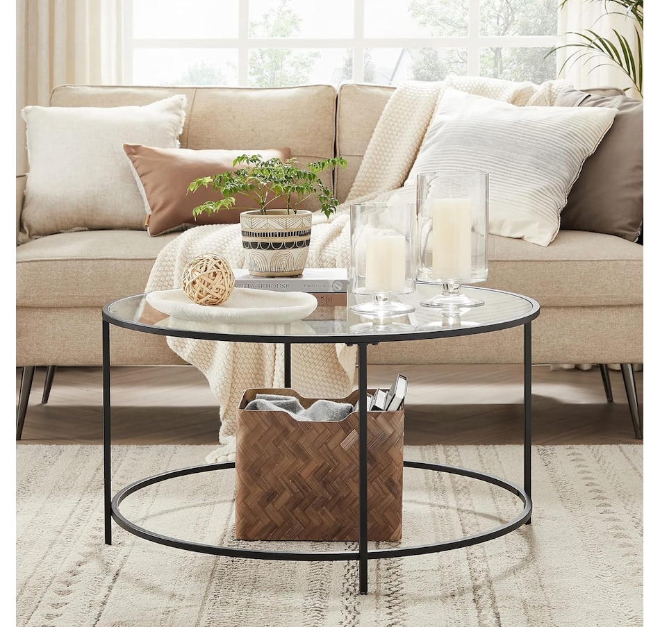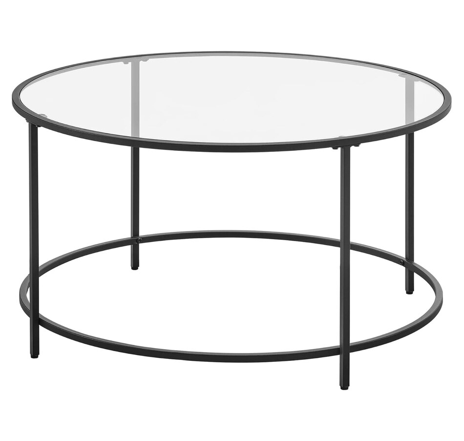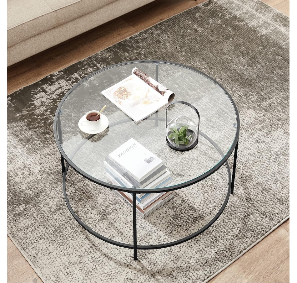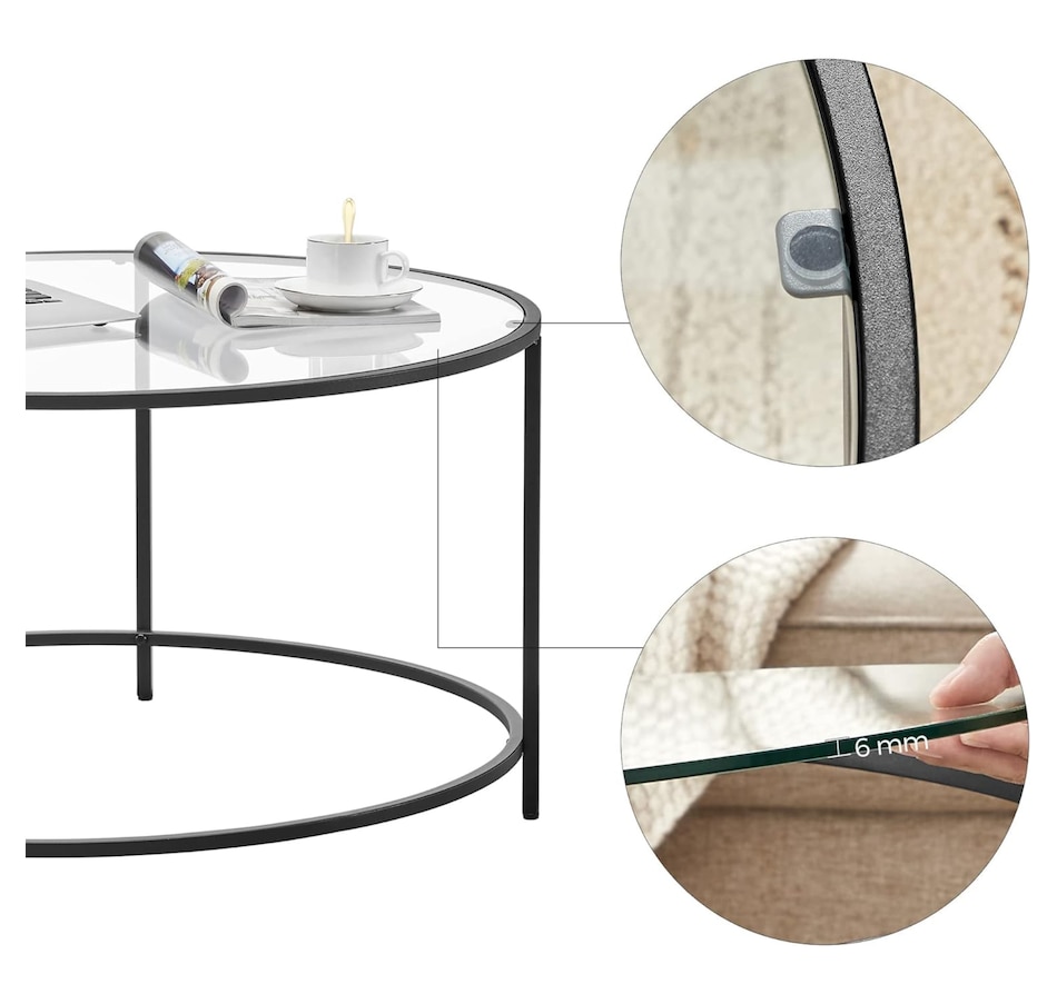 • Boutique Home Round Coffee Table with Metal Frame and Tempered Glass Top