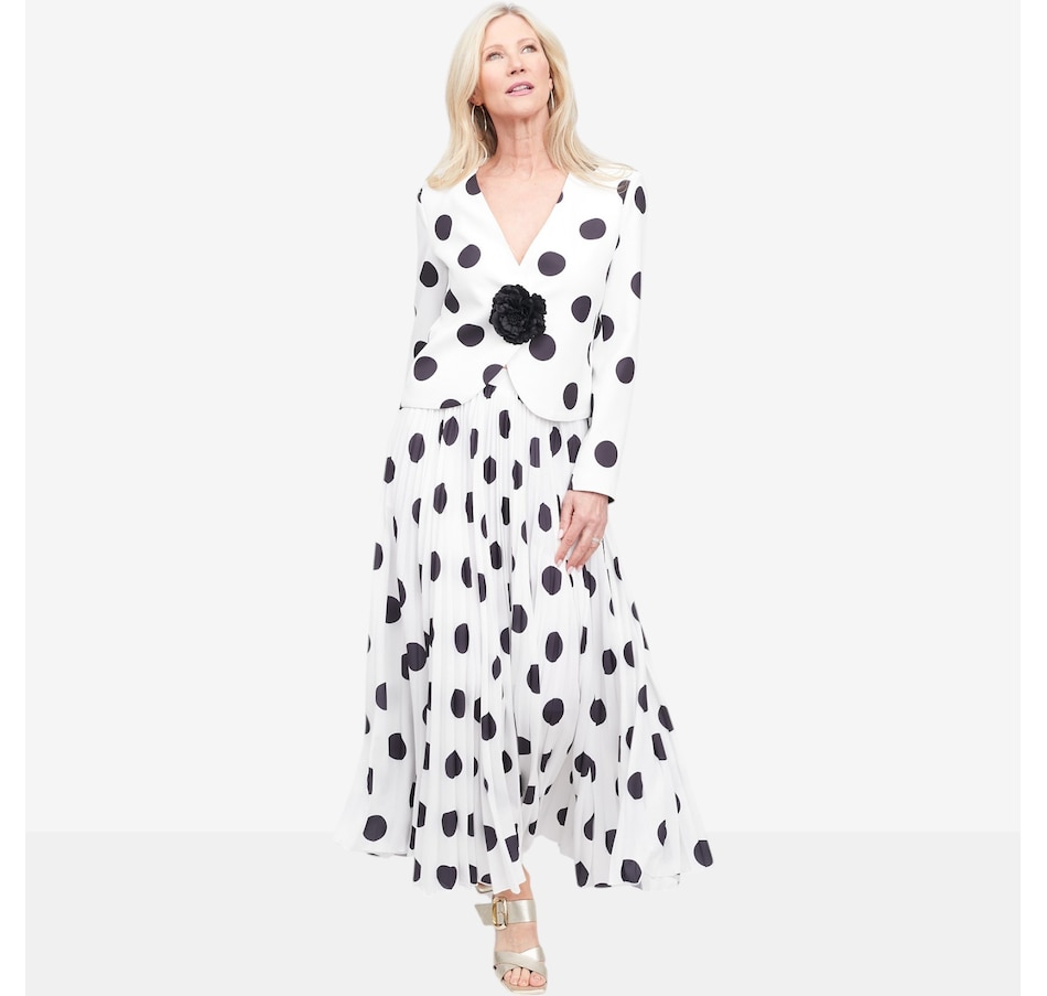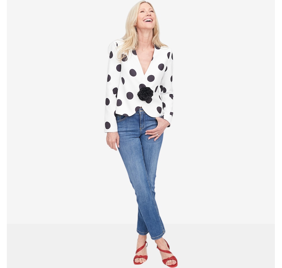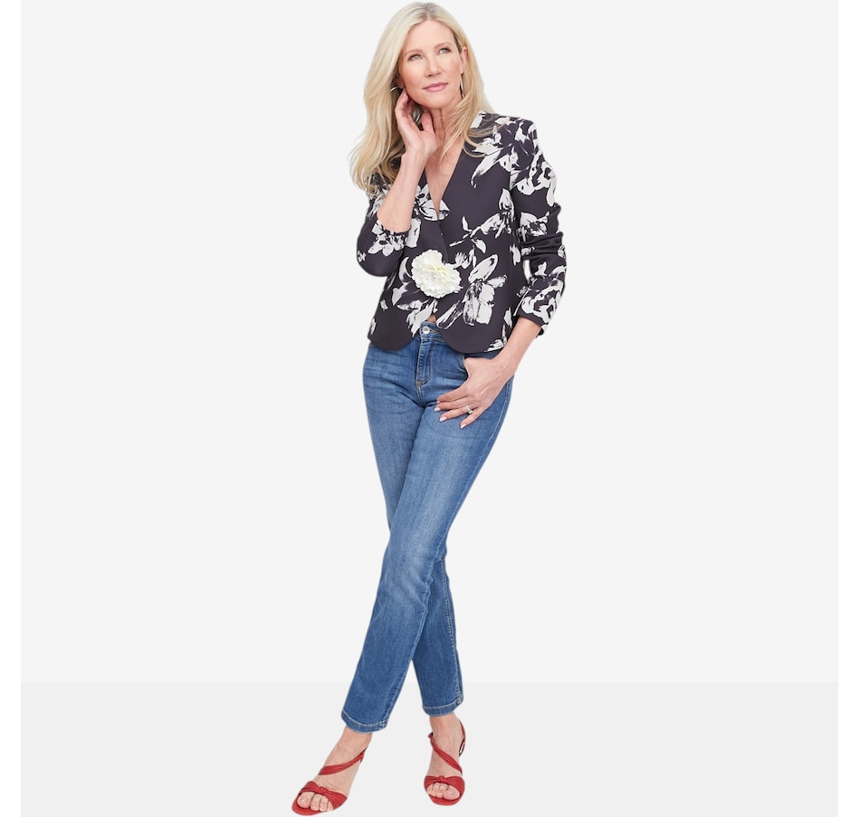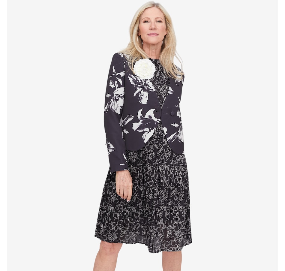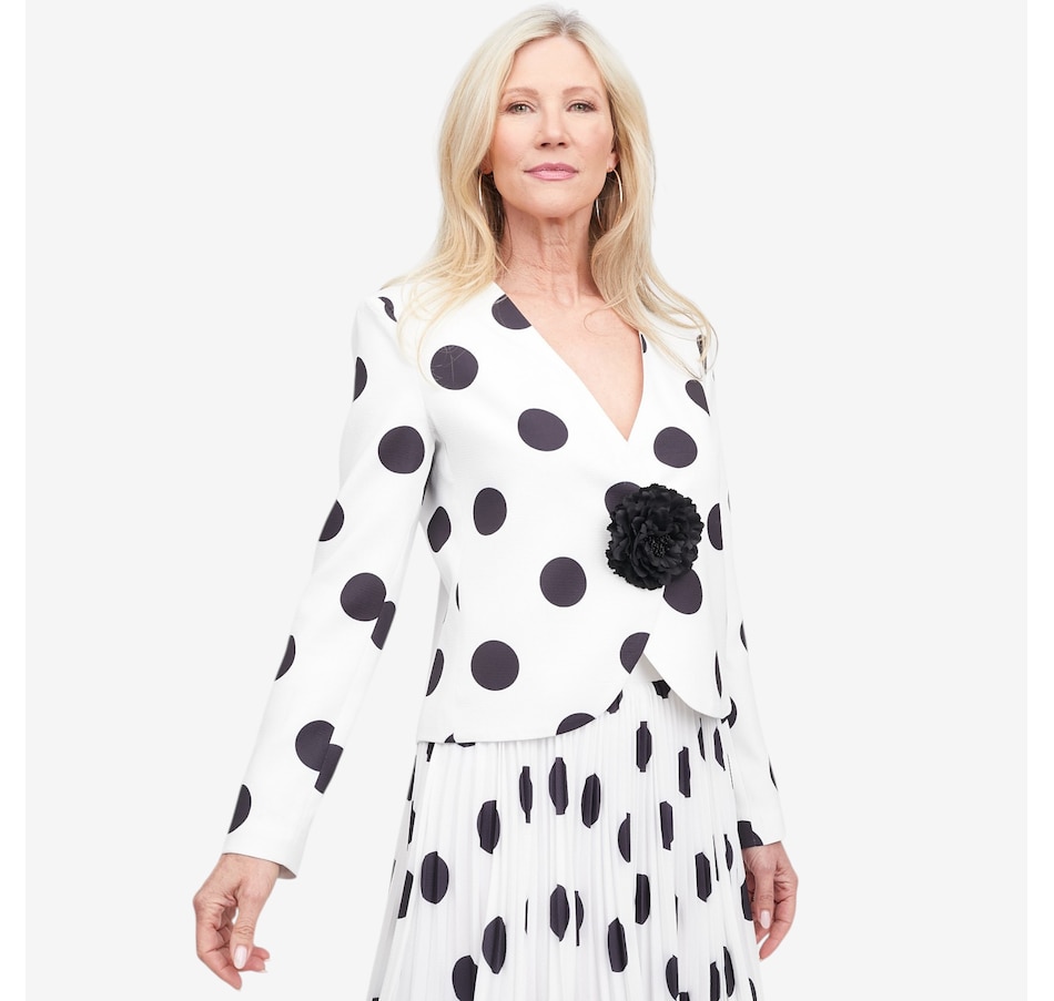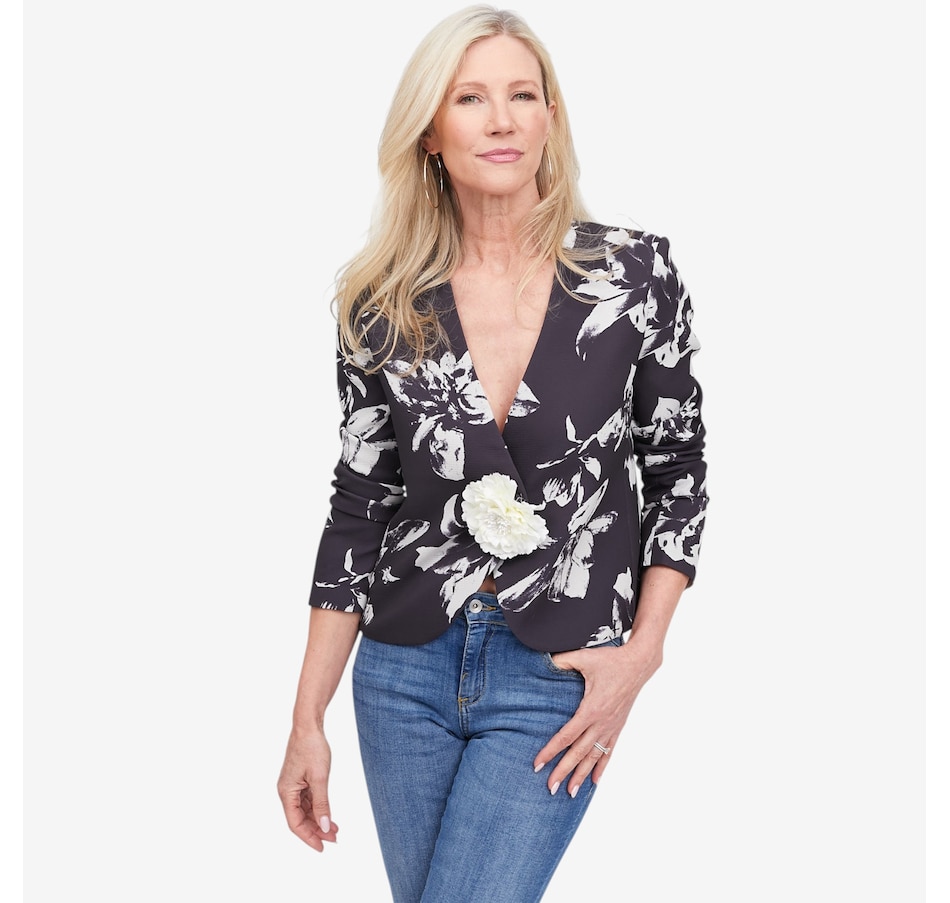 Polished, elegant, and versatile, the Brian Bailey flower pin jacket will elevate your look with effortless sophistication. Featuring a flattering V‑neck silhouette and subtle shoulder pads for a refined structure, it brings confidence to both occasion and everyday styling. The removable floral pin adds a touch of statement charm, allowing you to personalize your look with ease. Finished with a discreet single inside button closure, it pairs beautifully with the sunburst pleated skirt for weddings or styled down with a knitted skirt or favourite jeans. Thoughtfully tailored and easy to wear, this jacket is a timeless layer with modern versatility.