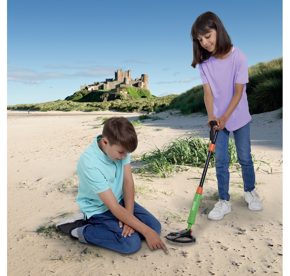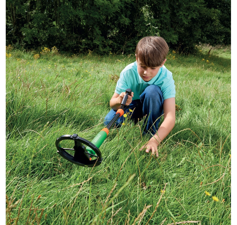 This beginner's metal detector is for budding treasure hunters, who can start by searching for coins and lost items in the garden, on walks or on the beach. It's a great hobby for all ages that can inspire the imagination. What will you find?