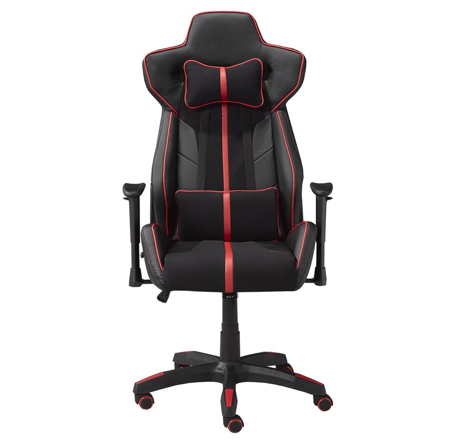 The chair provides the ultimate in gaming comfort offering a convenient tilt mechanism, a 180-degree recline function and easy hydraulic lift, plus it comes equipped with five dual casters so you can roll it around the room with ease. This high-backed chair also complements any space with its clean, contemporary design.
